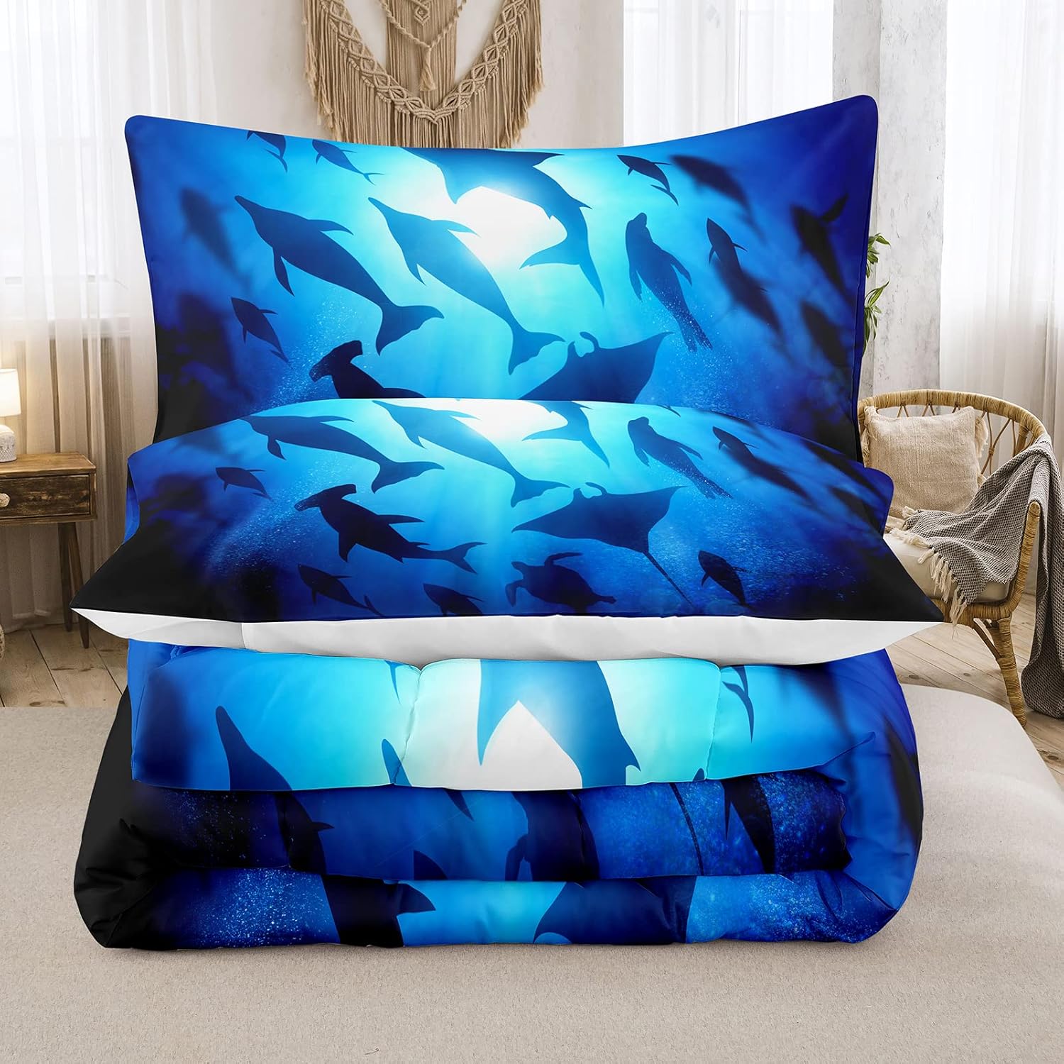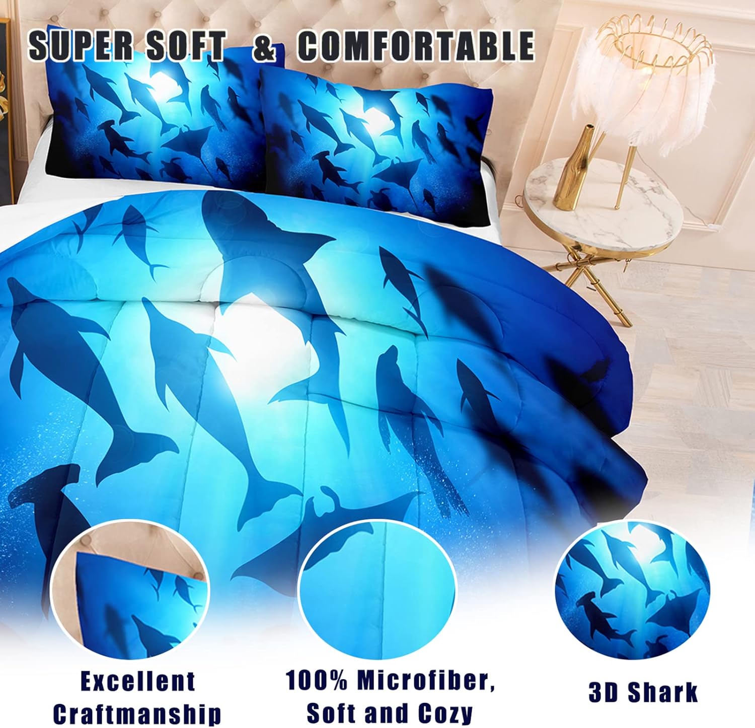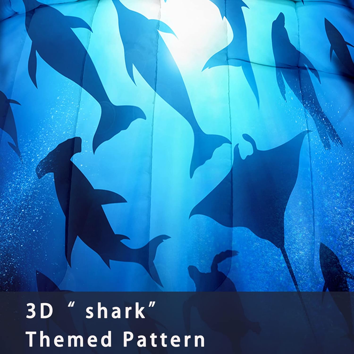 Bring the excitement of the ocean into your child's sleep space with this stylish and comfortable bedding set. Featuring a soft microfiber polyester fabric, it's designed for a gentle touch and optimal breathability, ensuring a restful night's sleep. The unique 3D printed shark design adds an eye-catching element that captures the imagination of young fans of the sea, making this a standout choice for playrooms or bedrooms.