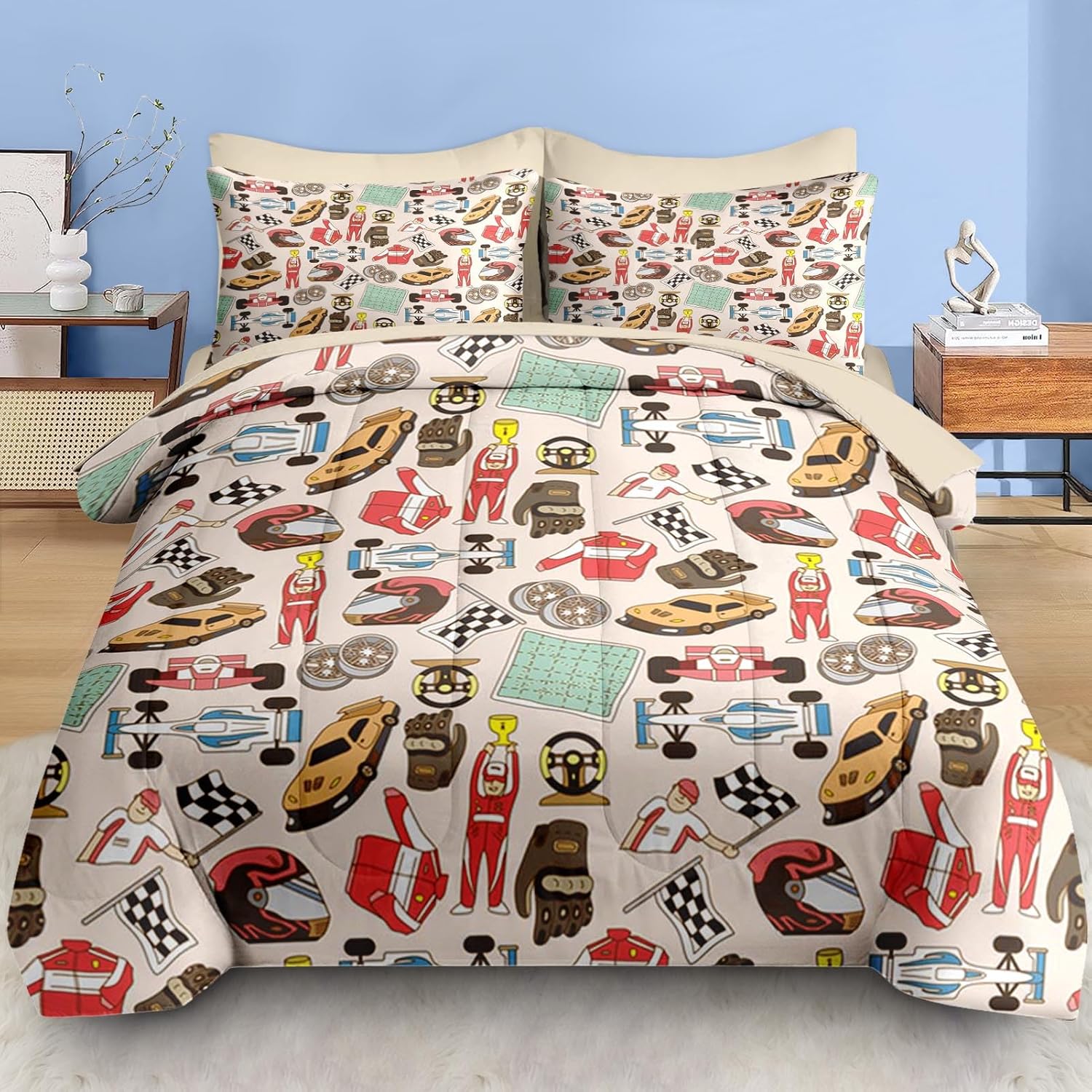 Elevate your bedroom with this trendy 7-piece comforter set designed for car lovers. Perfect for kids, teens, or anyone who wants a stylish and functional way to express their passion.