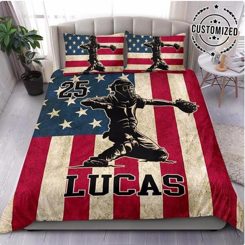 Bring a bold and playful style to your child's room with this customizable baseball-themed bedding set. Designed for boys, it features embroidered names and numbers to create a unique, personalized sleeping space that reflects their personality and passions.