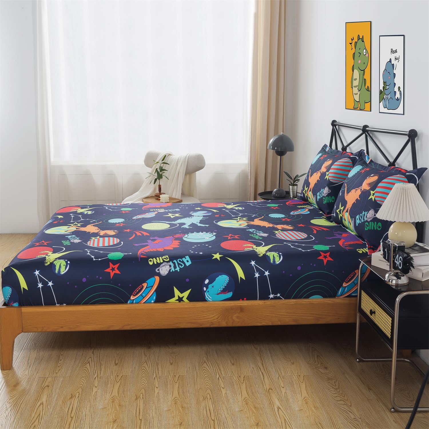 QJMIAOFANG Dinosaur Space Twin Bed Set 2 Pieces
