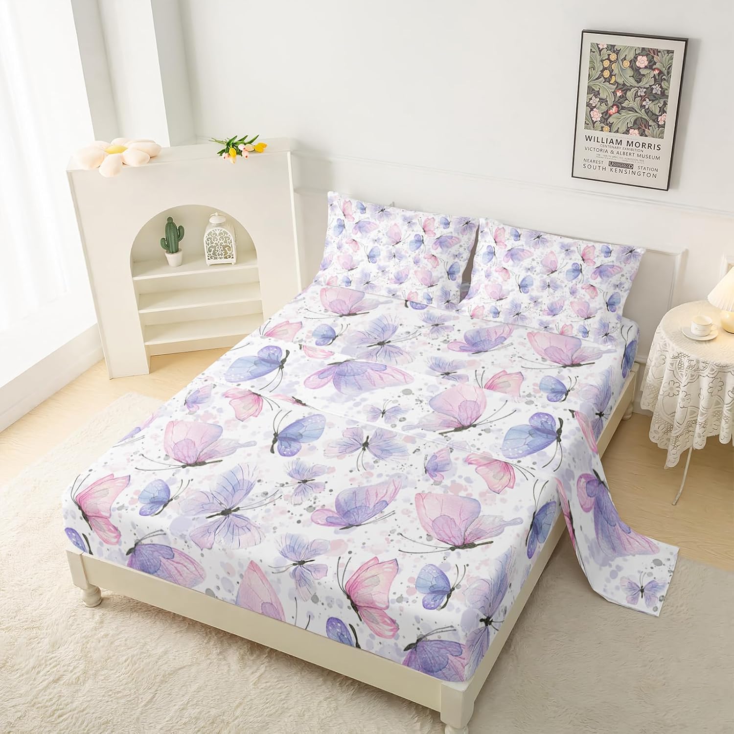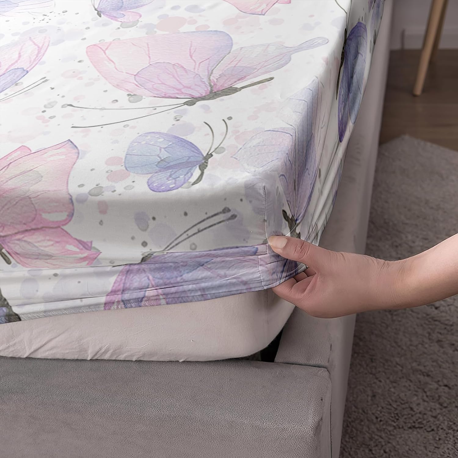 QOOMO Butterfly Bedding Set adds a cute and cozy touch to your child's bedroom. Featuring vibrant butterfly designs and soft microfiber fabric, this set ensures a safe, comfortable night's sleep. Includes 1 fitted sheet, 1 flat sheet, and 2 pillowcases, ideal for boys and girls of all ages.