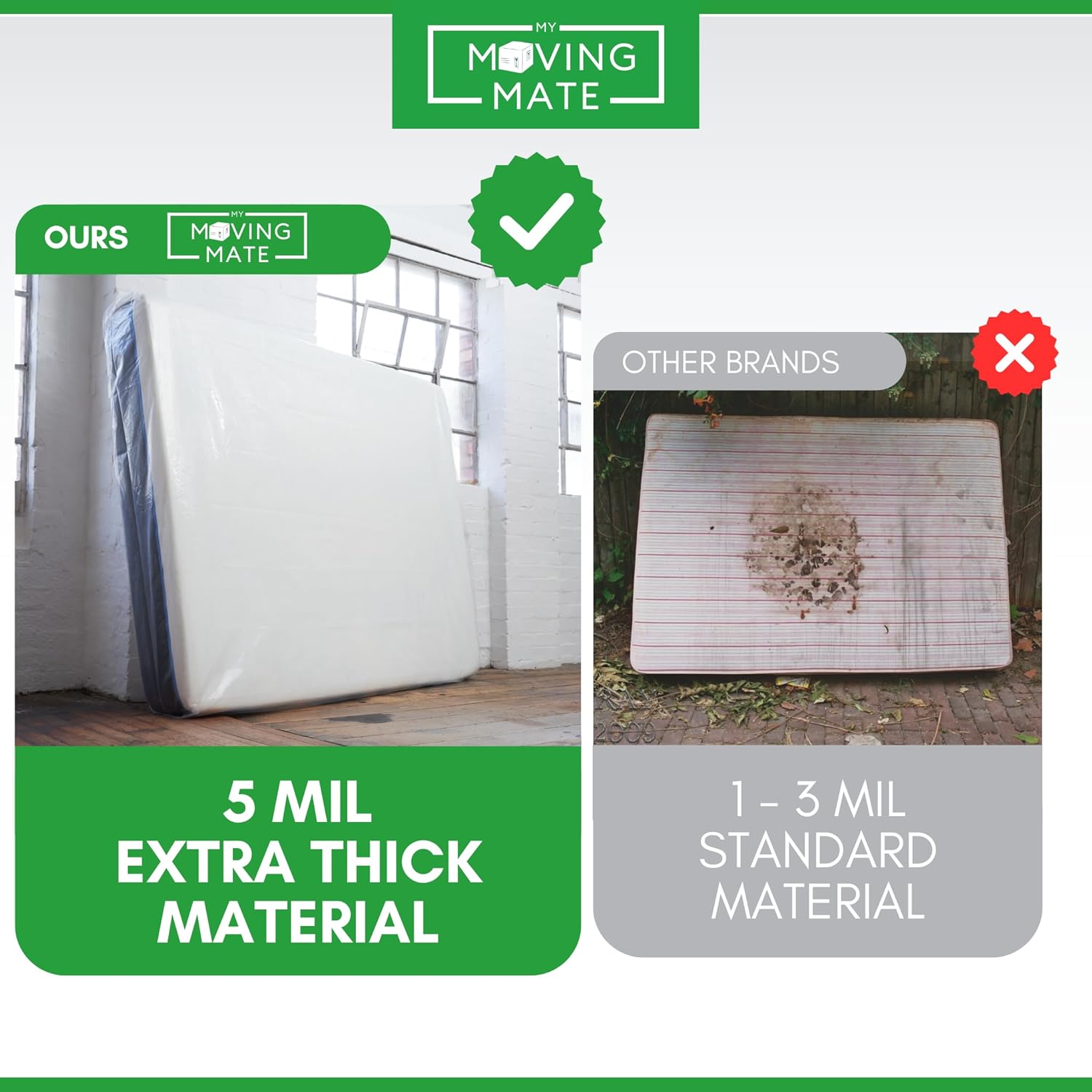 Keep your queen mattress safe during moves or storage with a reliable and durable cover that offers unmatched protection. Made from thick 5 mil LDPE material, this mattress bag is designed to shield your mattress from spills, dust, odors, and everyday wear. Its tearproof construction ensures that your mattress stays in pristine condition, making it the perfect solution for moving houses, sending furniture, or storing your mattress for the long term.