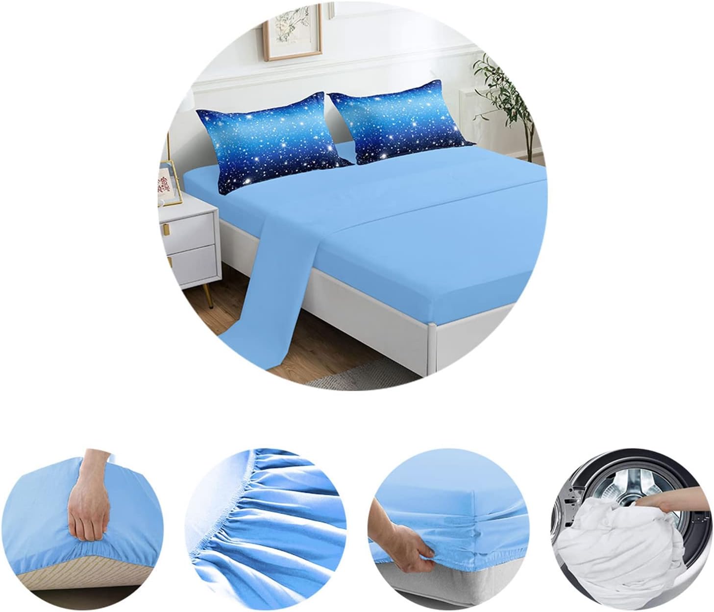 The blue gradient pattern with shimmering glitter stars creates a magical, dreamy ambiance that brings a touch of the cosmos to your room. This eye-catching design adds a modern and romantic vibe, perfect for those who love a little sparkle in their sleep.