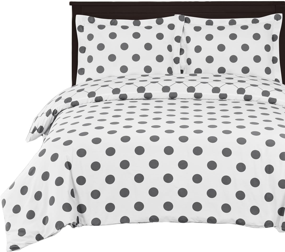 This elegant 3-piece duvet cover set adds a touch of timeless style to your bedroom while keeping you comfortable all year round. Designed with a reversible pattern, it features striking grey polka dots on a clean white background, offering a versatile and chic look that suits any décor.
