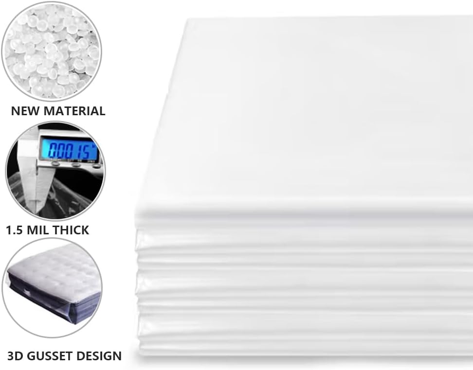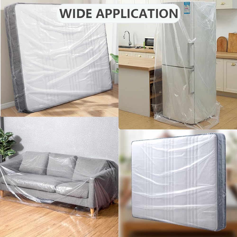 Functionality meets simplicity with this versatile plastic mattress cover. Just lay the protector flat, slide your mattress inside, and fold it securely with packaging tape. It's designed to fit most Queen-sized mattresses, offering a snug and protective wrap. Plus, its compact and lightweight nature makes it easy to transport and store, while also being ideal for covering bulky items like sofas, lovesets, grills, and even Christmas trees.