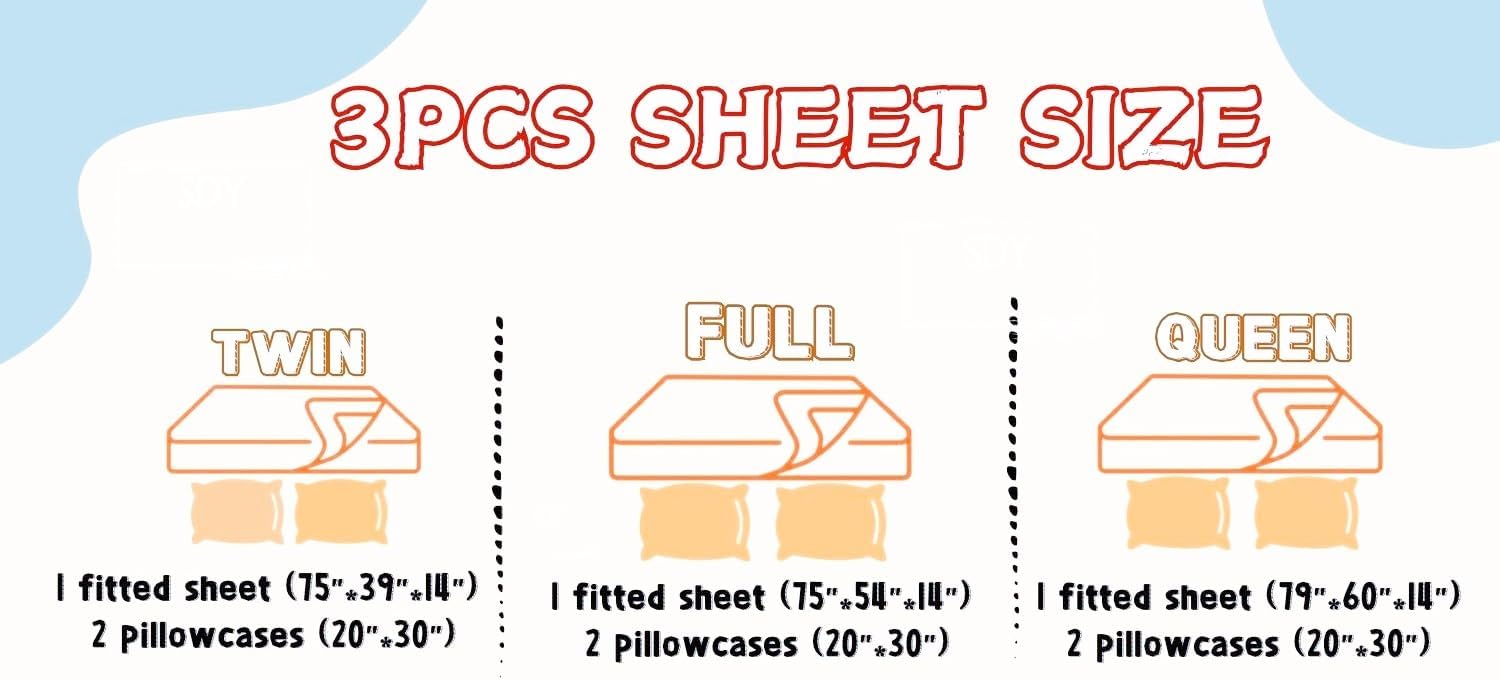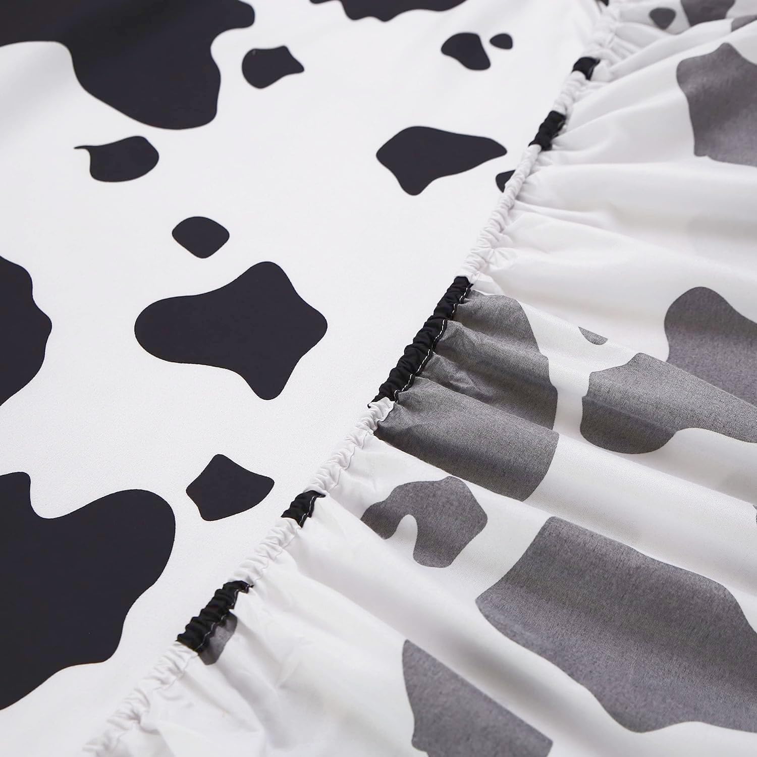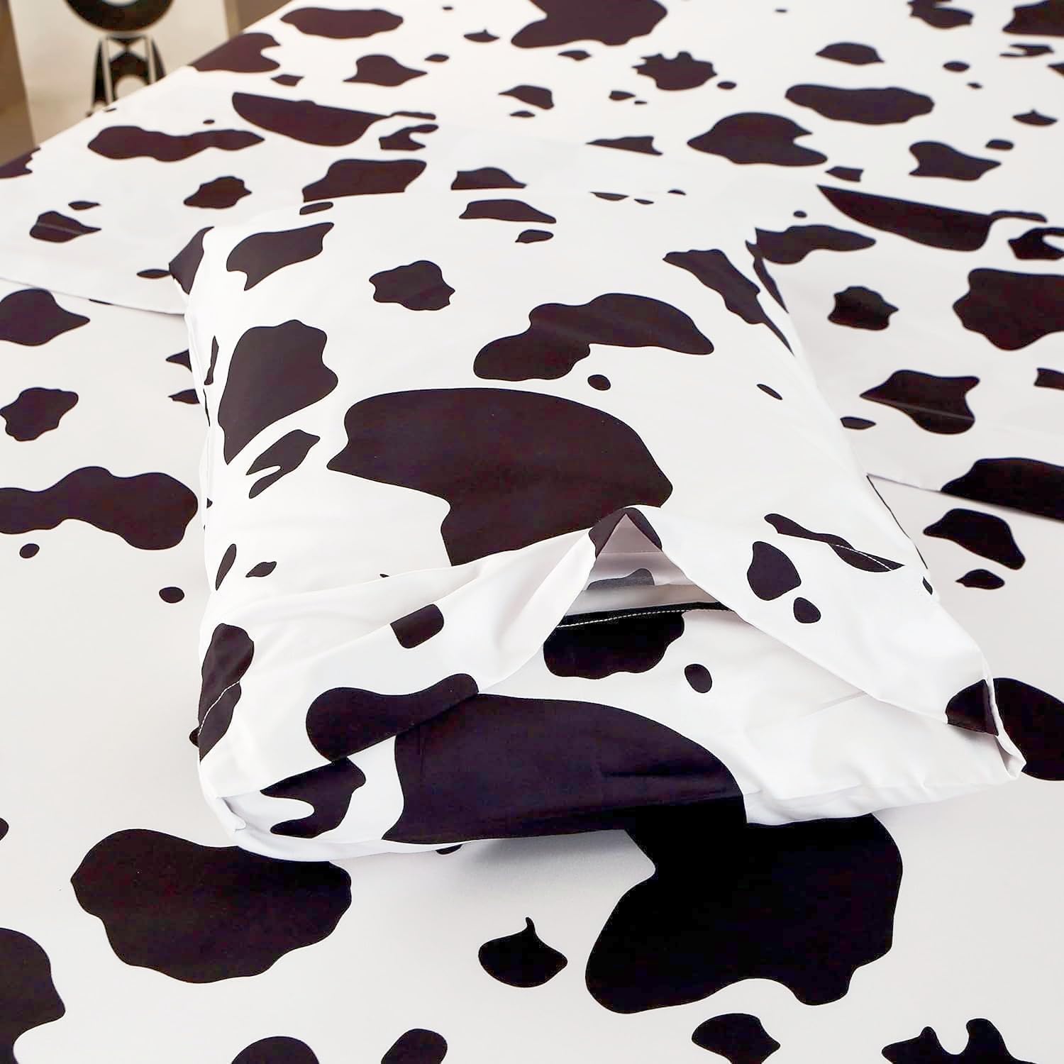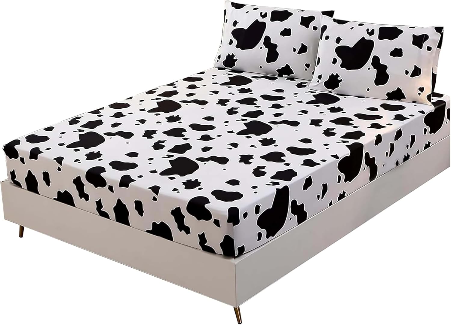 SDY 3PCS Cow Print Fitted Sheet Set Queen Size features a playful cartoon design and deep pockets for a secure fit. Made from ultra-soft high polyester microfiber, it's durable, breathable, and perfect for kids' bedrooms. Includes 2 pillowcases for a complete and cozy sleep setup.