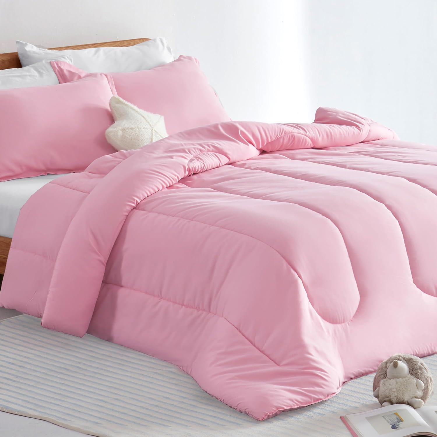 Ideal for little girls who adore pink and playful designs, this comforter set creates a warm and inviting atmosphere that makes bedtime feel magical. Its 3-piece set includes a comforter, shams, and a fitted sheet, all crafted with premium piped edges for a polished look. The fabric is not only soft and fluffy but also machine washable, making it easy to maintain. Plus, the fade-resistant printing ensures vibrant colors that last through years of use.