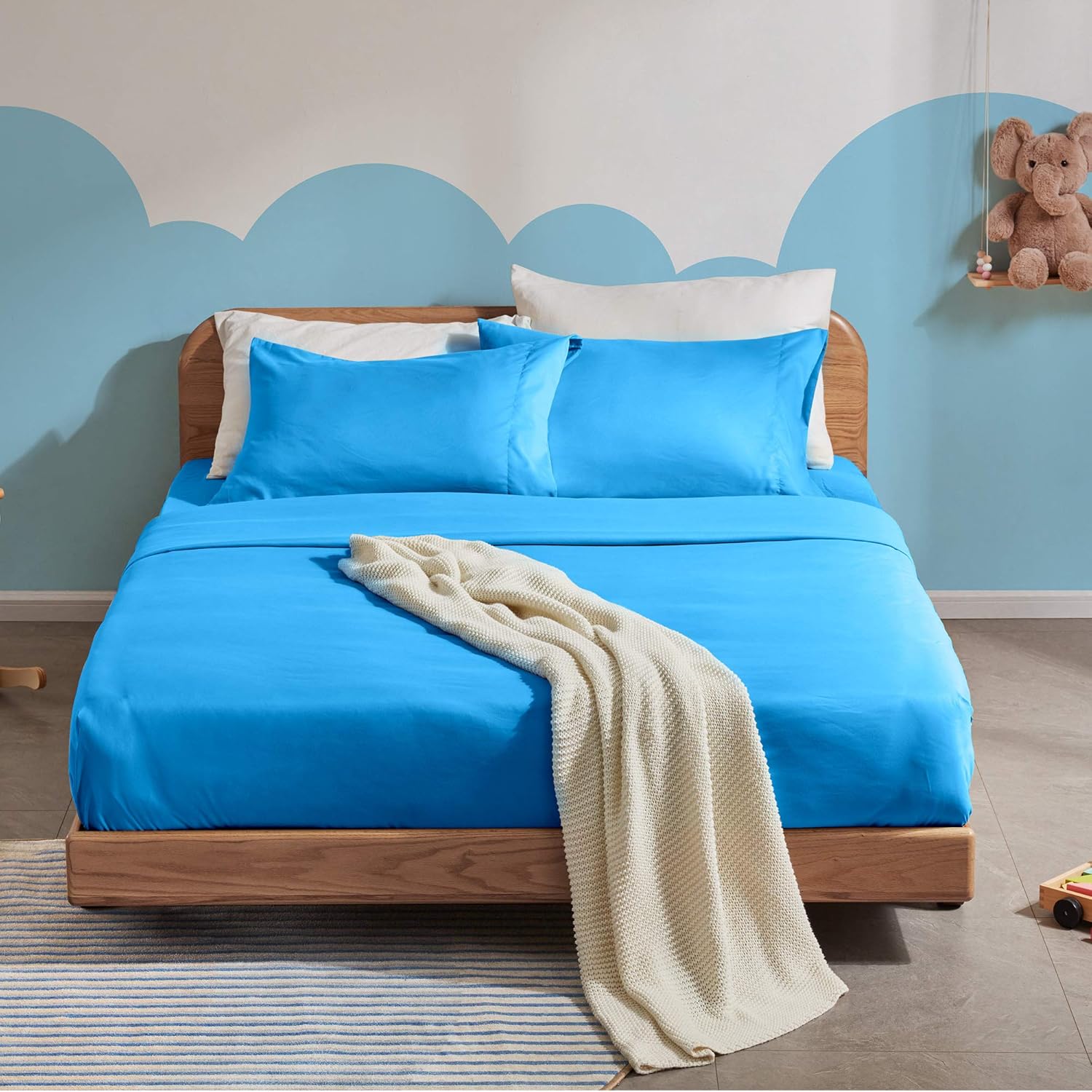 This 3-piece bed sheet set combines style and comfort, making it an ideal addition to your child's bedroom. The charming sky blue design offers a playful yet calming atmosphere, helping kids drift off to sweet dreams. Crafted from high-quality microfiber fabric, the sheets are ultra-soft and double brushed for a luxurious feel that keeps your child cozy all year round.