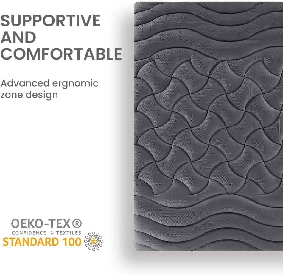 With NANOTEX Coolest Comfort Technology, this topper regulates body temperature and wicks away moisture, keeping you cool and refreshed. The ultra-soft microfiber material mimics the plush comfort of a luxury hotel, offering a silky-smooth feel that cradles your body for deep relaxation. The 3-zone ergonomic design delivers targeted support, helping to align your spine and reduce pressure points for a more balanced sleep.