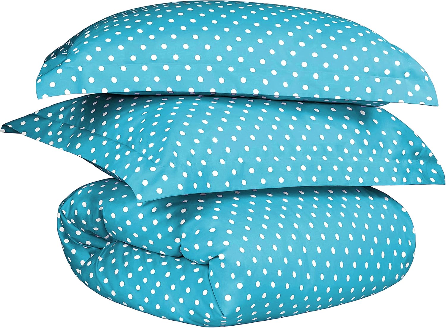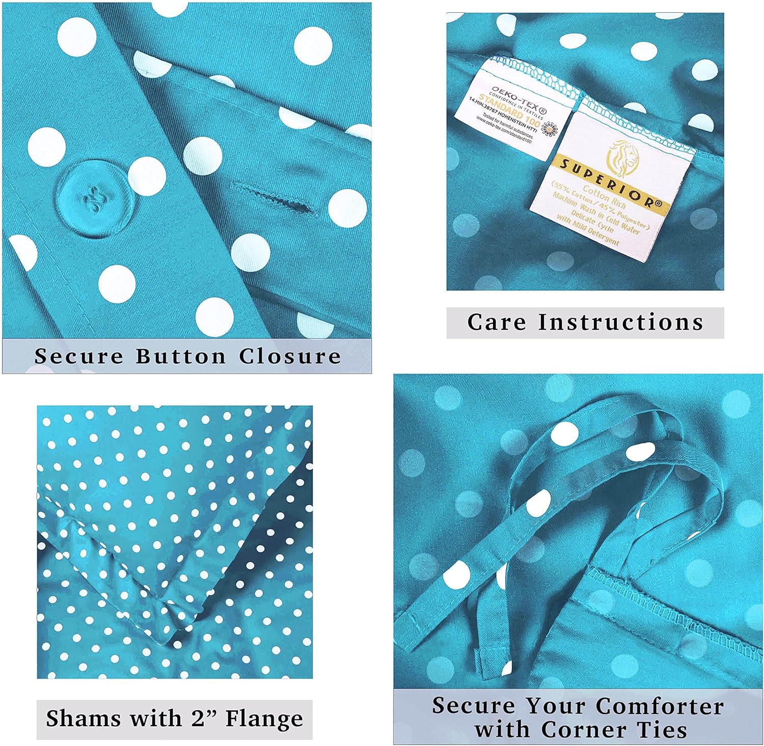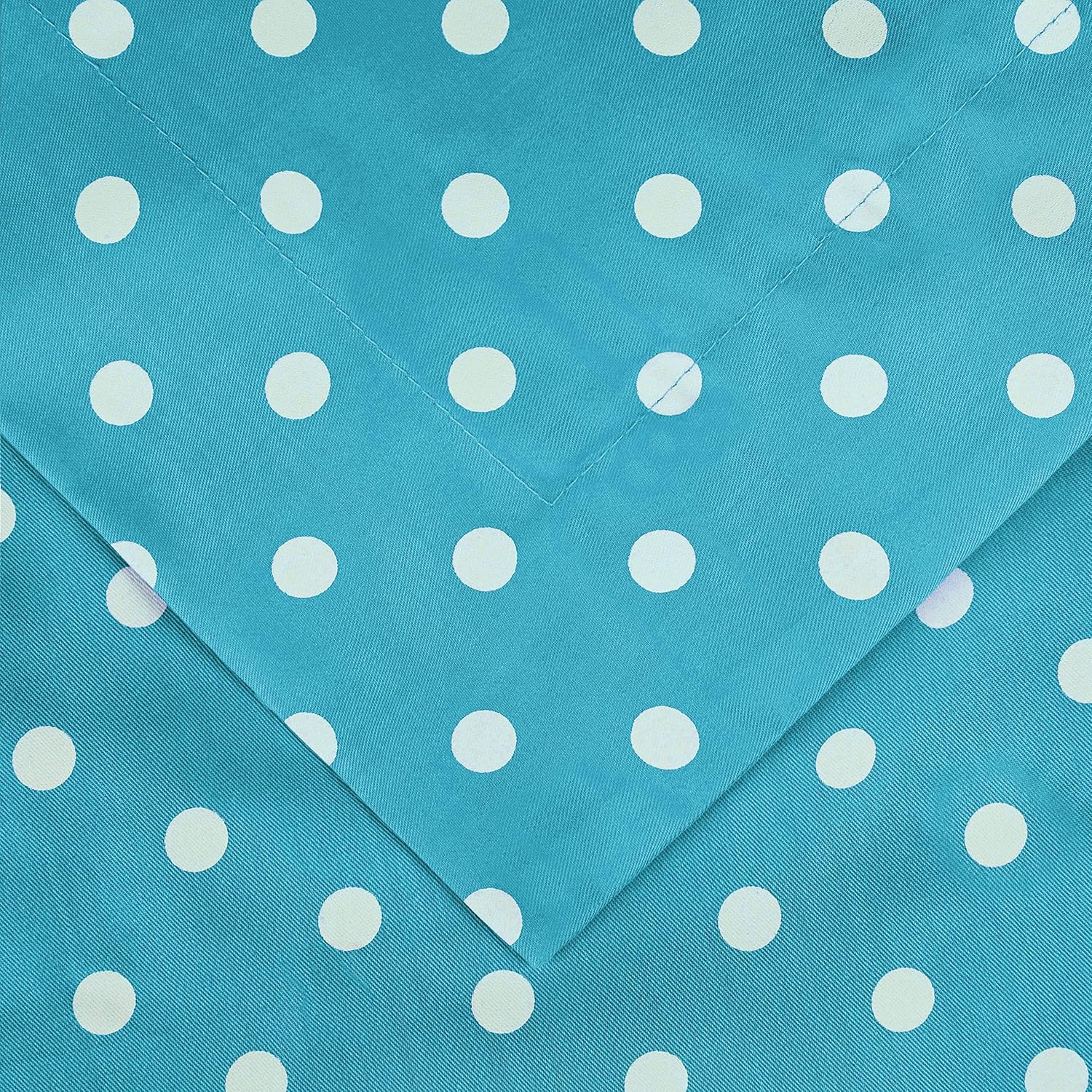 The aqua-colored polka dot design brings a fresh, modern aesthetic that easily complements both classic and contemporary interiors. This set is crafted from a premium blend of 55% cotton and 45% polyester, combining the natural softness of cotton with the durability of polyester for a long-lasting, cozy feel.