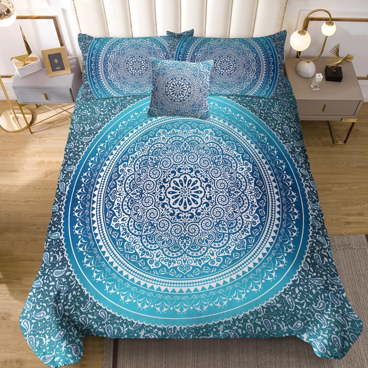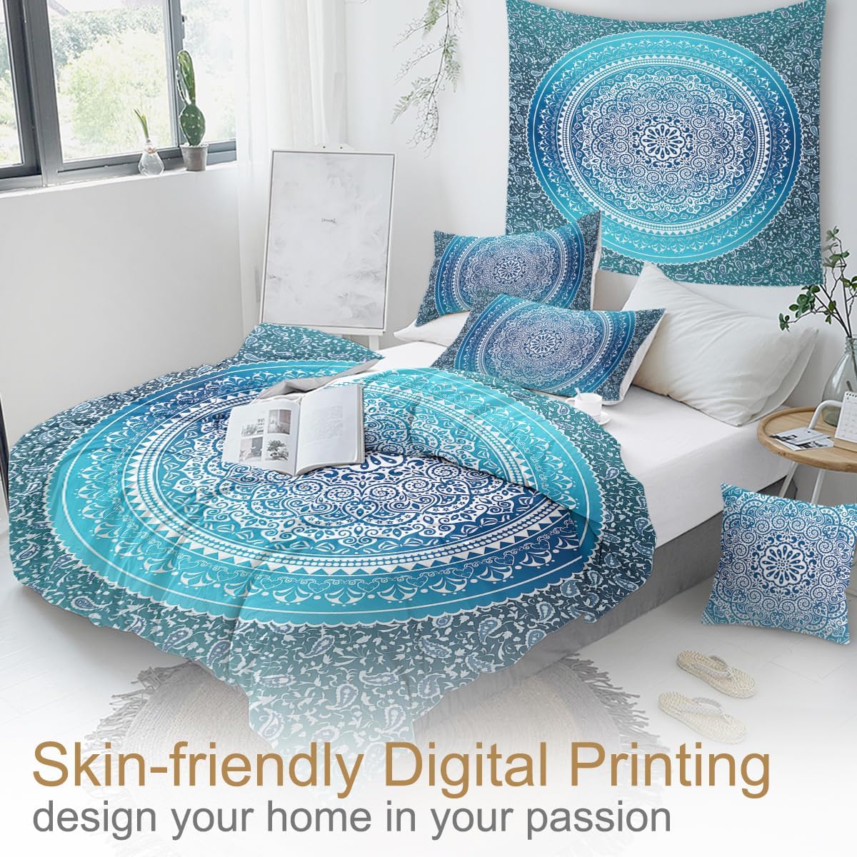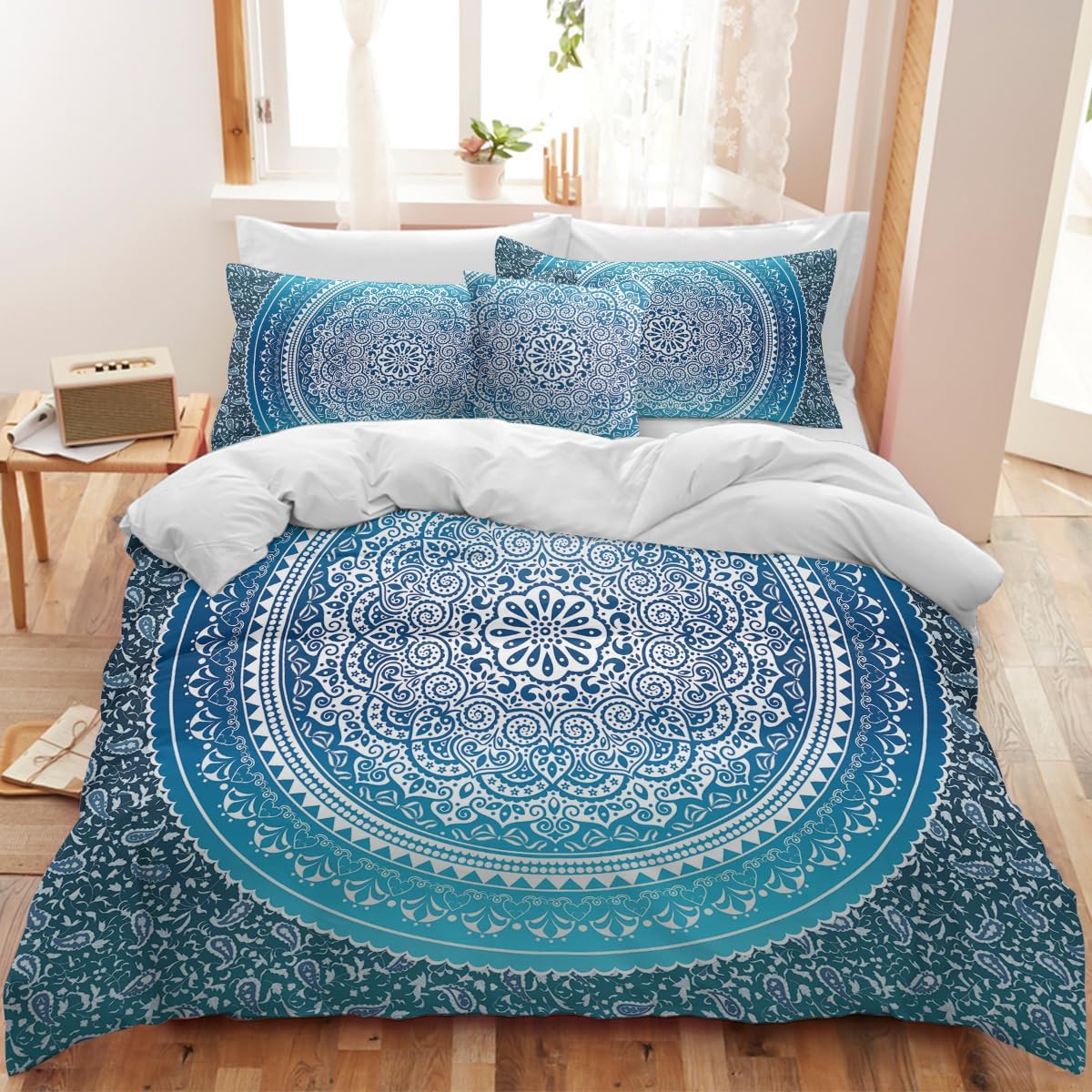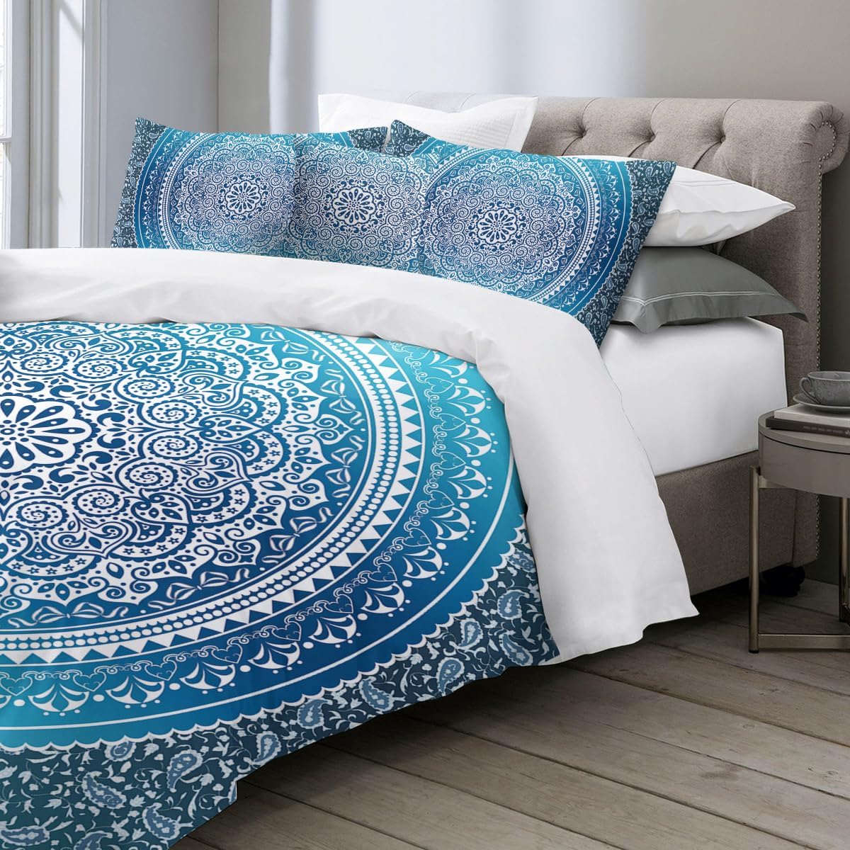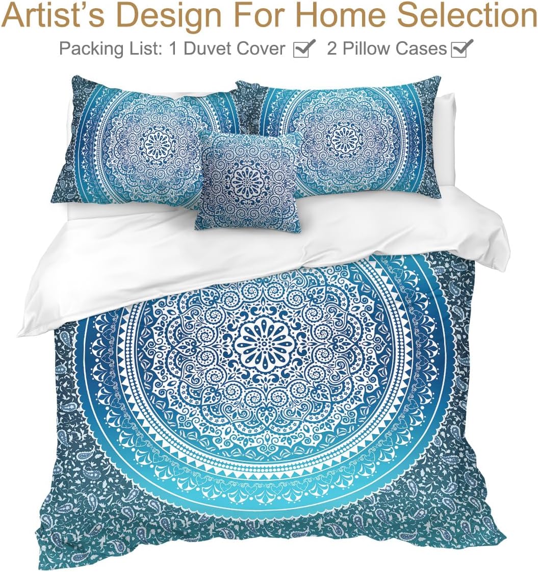 Keywords: boho duvet cover set, teal mandala bedding set, cal king size duvet cover, microfiber duvet cover, bedroom decor set