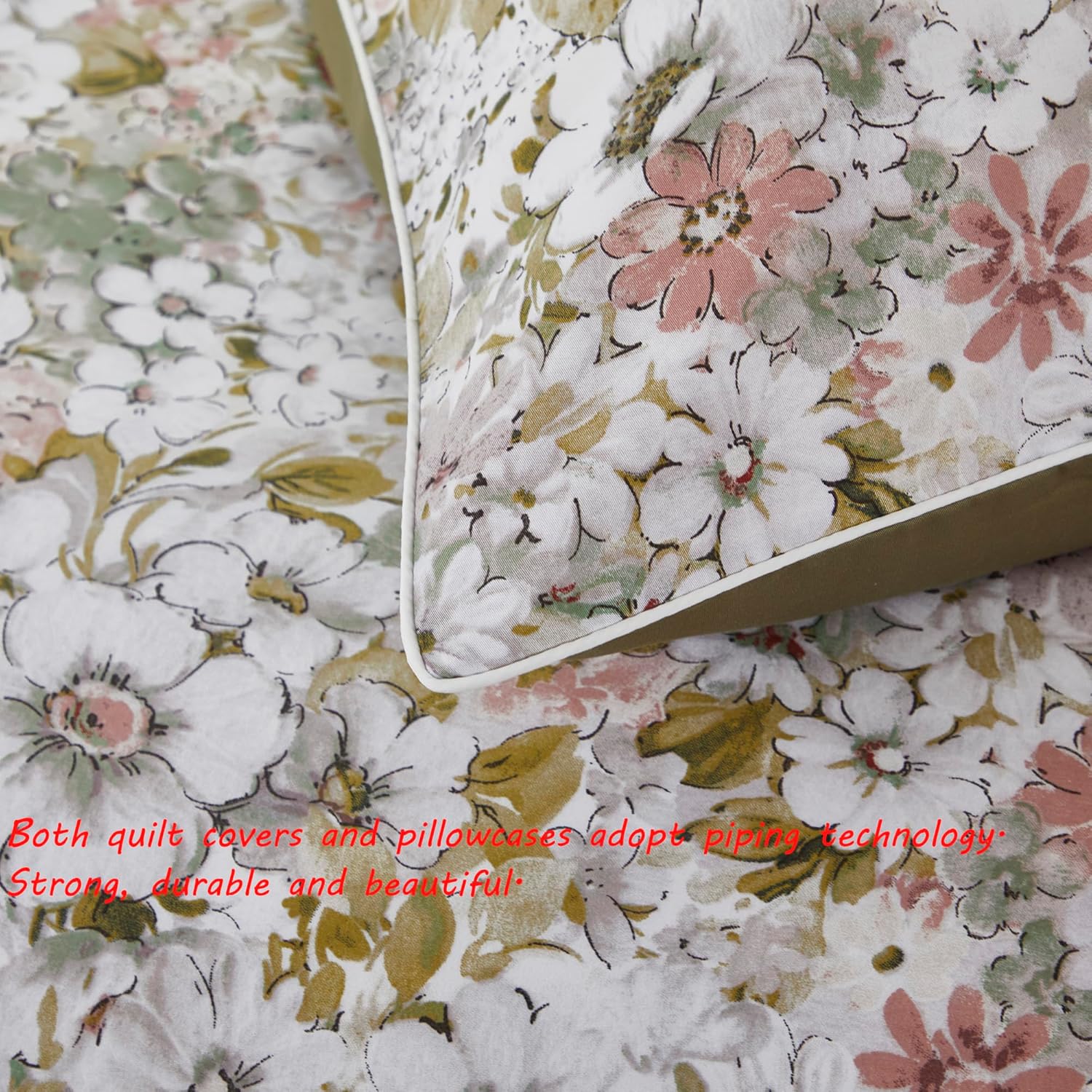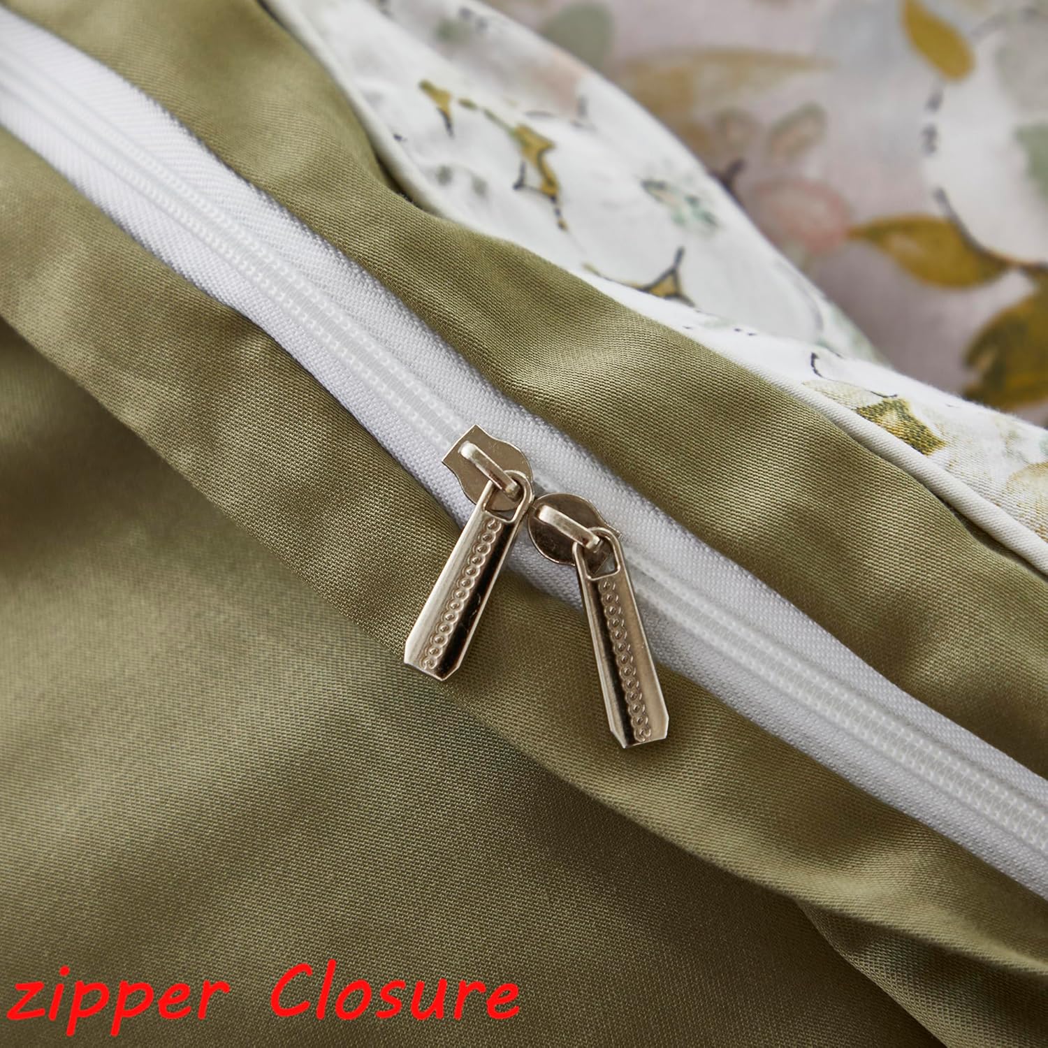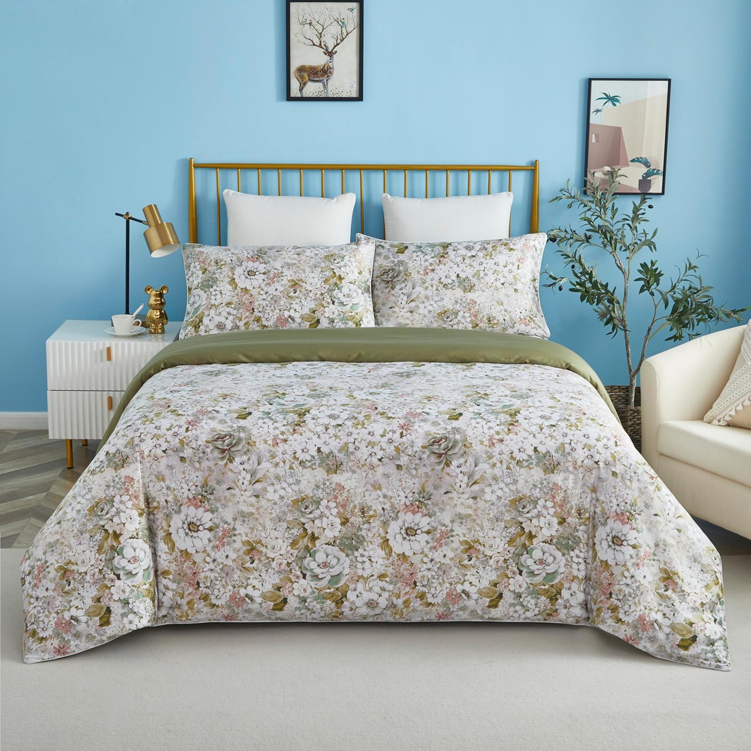Elevate your bedroom with this exquisite boho duvet cover set, featuring a soft white flower design paired with a sophisticated khaki green solid. The set is crafted from 100% cotton, ensuring a gentle and breathable feel perfect for sensitive skin. With its elegant piping stitching and secure corner ties, this bedding set combines durability with a touch of artistry.