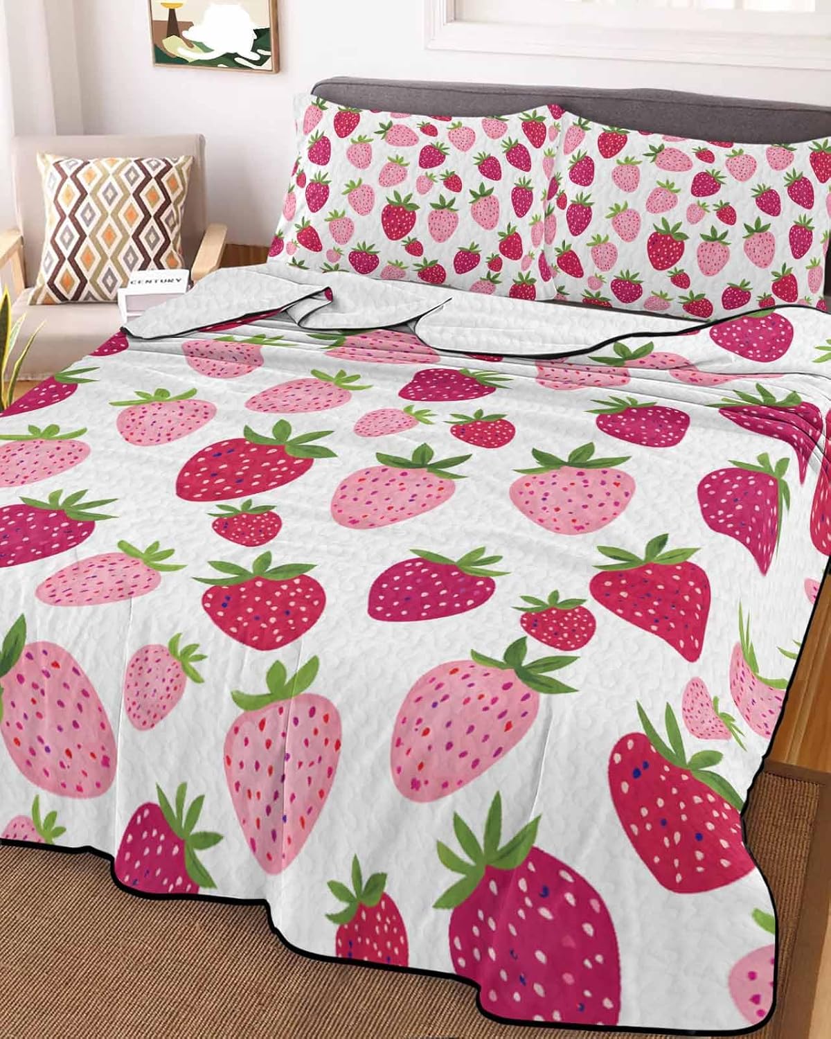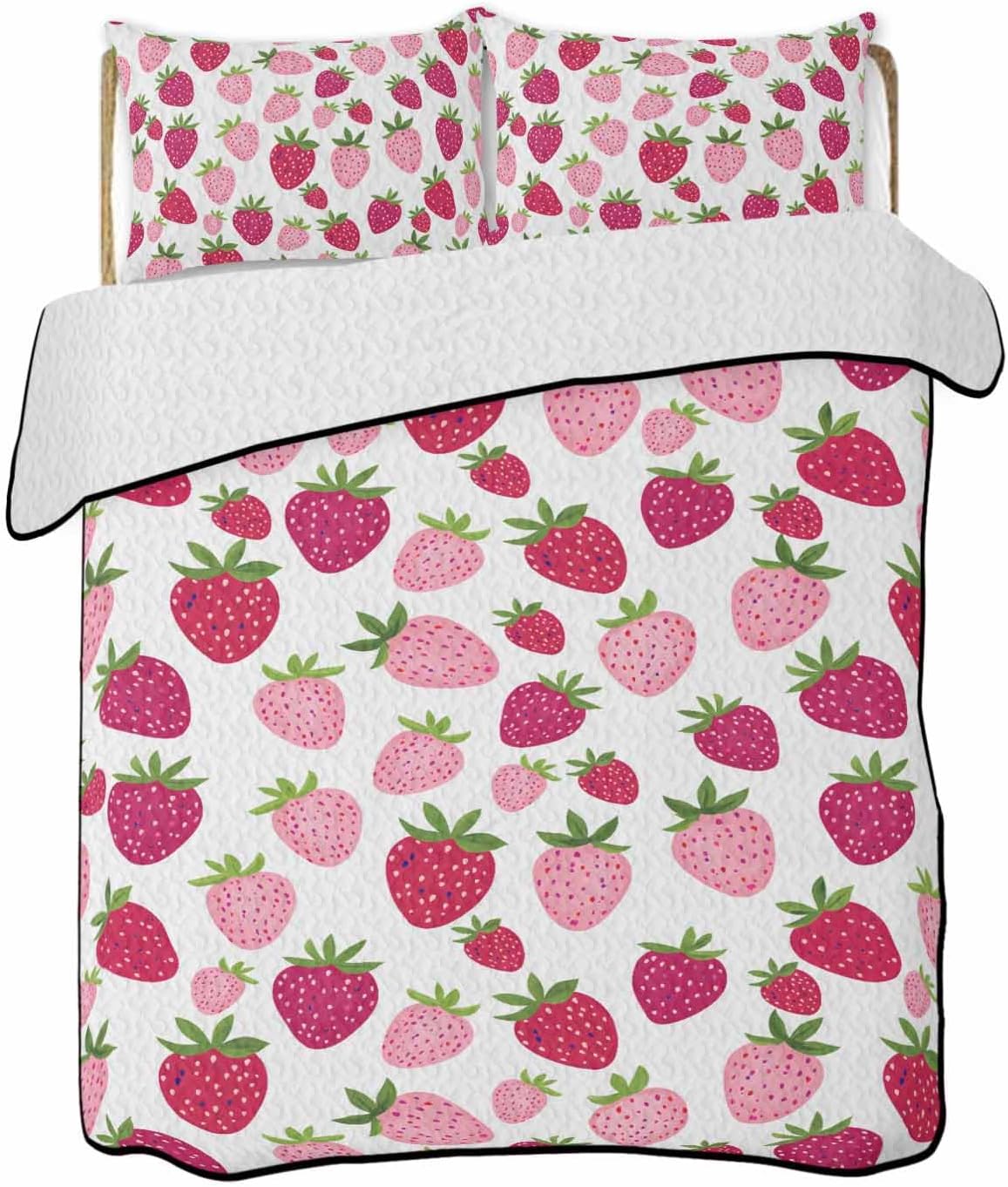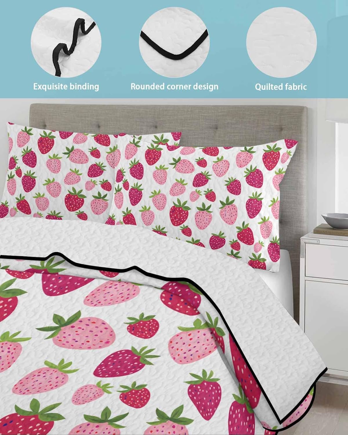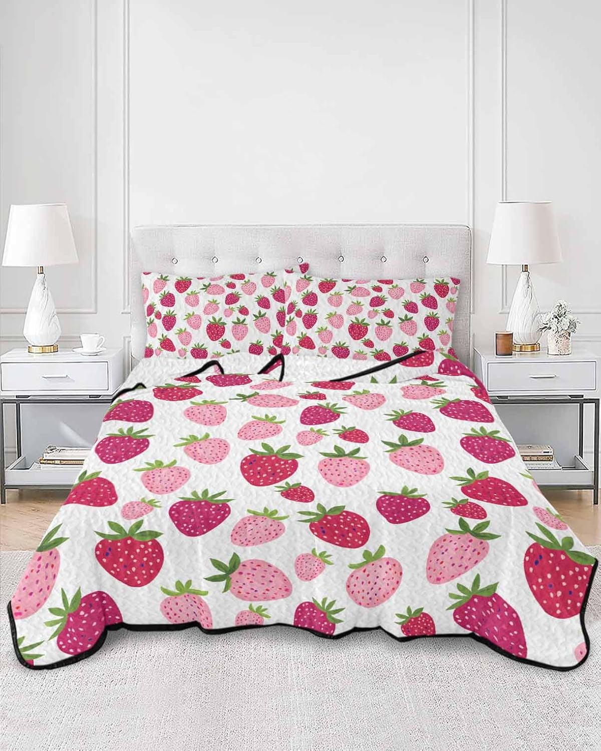 The 3-piece set includes one 96x106" quilt and two 20x26" pillow shams, making it the perfect addition to your bedroom. With its bright red and pink strawberry pattern, this set adds a stylish and playful touch to any room, transforming your space into a cozy retreat.