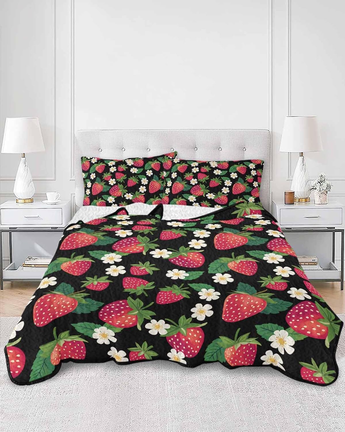 Add a touch of rustic charm and cozy comfort to your bedroom with the Stongaro Twin XL comforter set. Designed with a vibrant strawberry pattern, it brings a cheerful vibe to your space while ensuring a restful sleep. The lightweight and breathable microfiber cotton fabric keeps you cool in summer and warm in winter, making it an all-season essential.