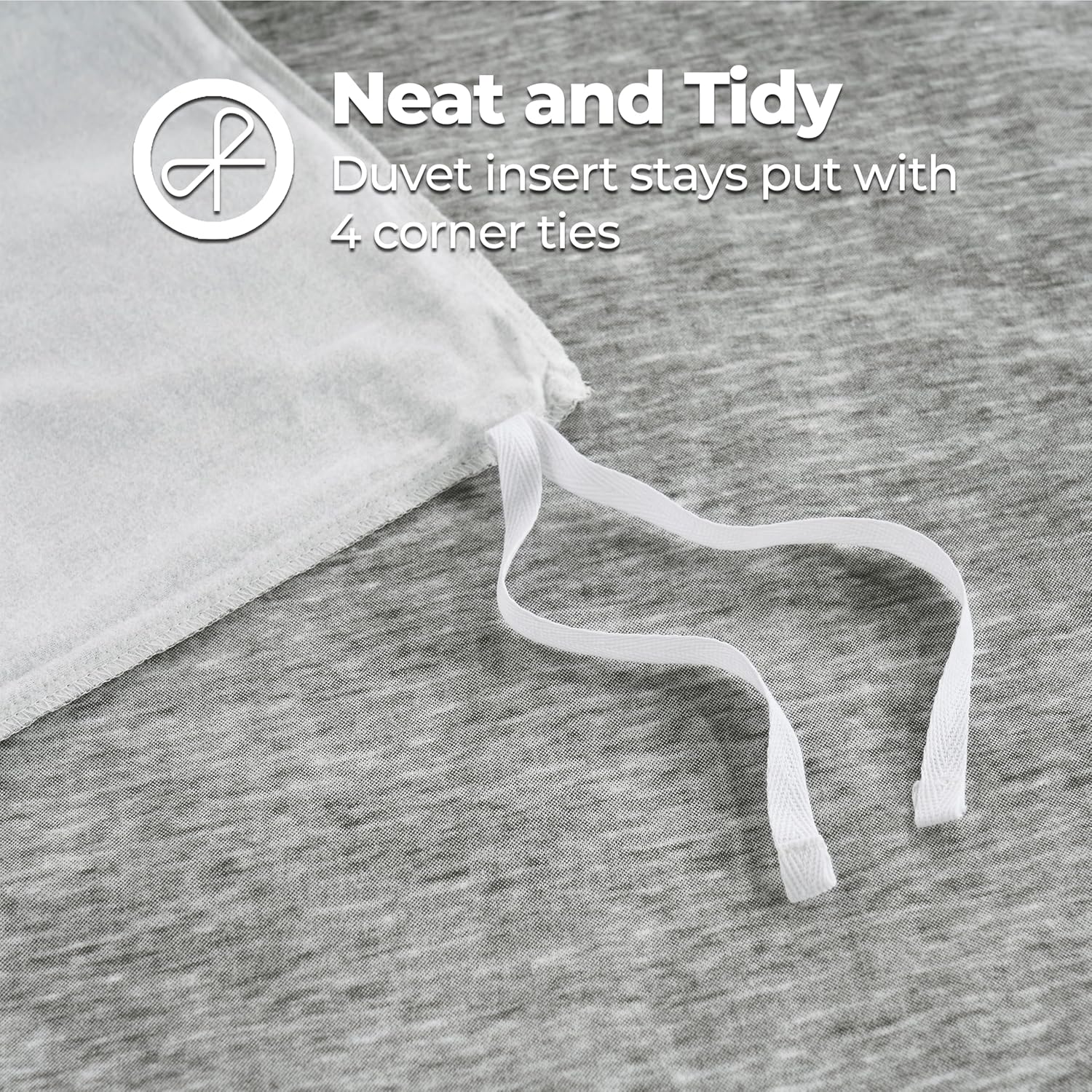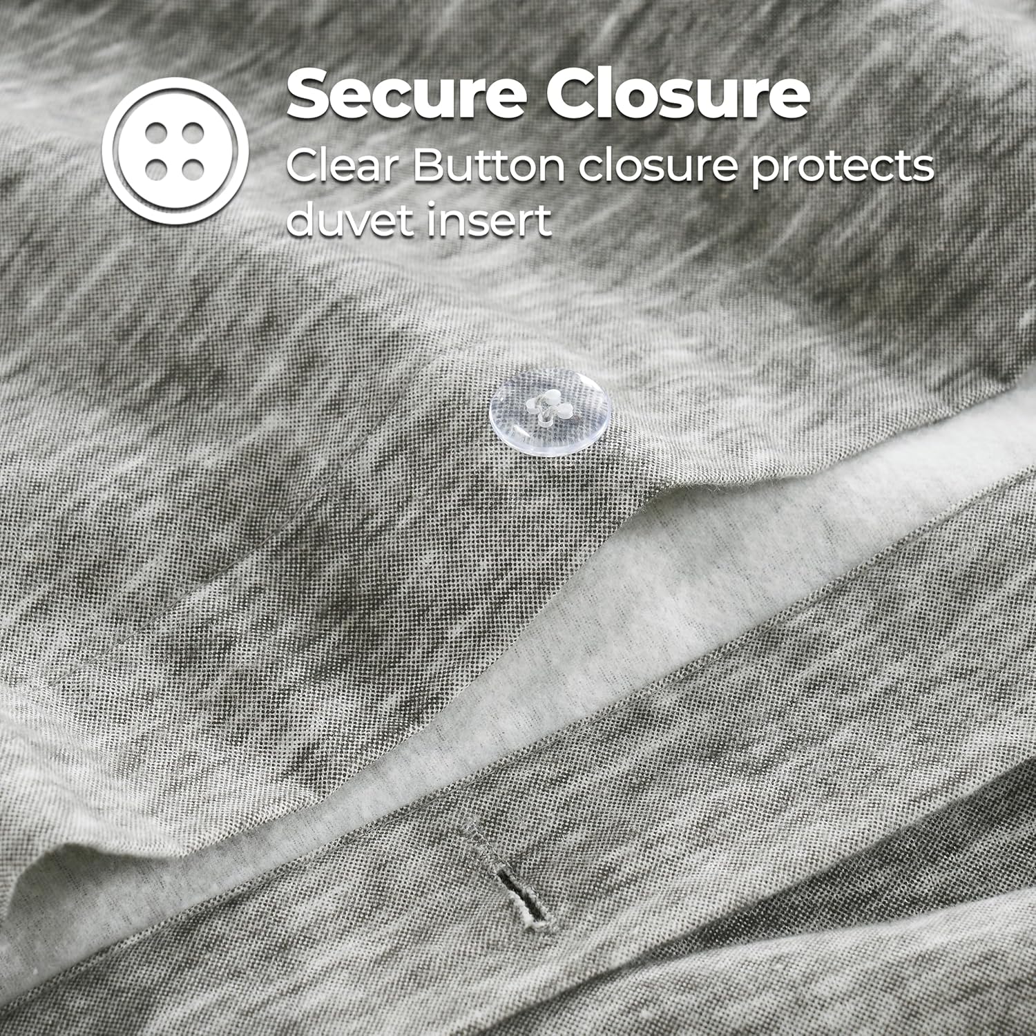 The set includes matching pillow shams, offering a cohesive and elegant look that enhances your bedroom decor. Its button and tie closure ensures a secure fit, keeping your duvet in place all night and preventing shifting for a smooth, uninterrupted sleep experience.