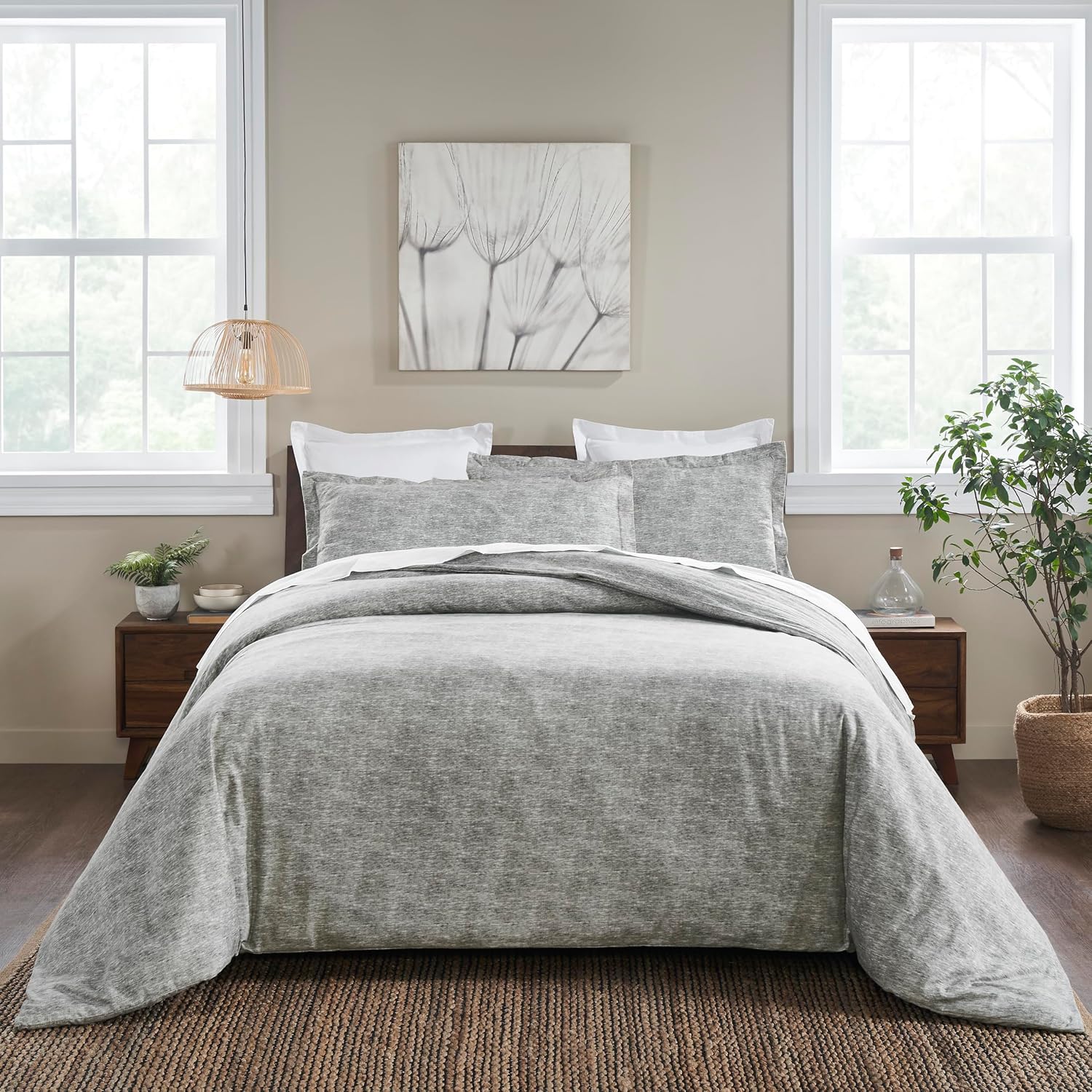 flannel cotton duvet set, melange duvet cover, charcoal duvet set, textured pattern bedding, button closure duvet set
