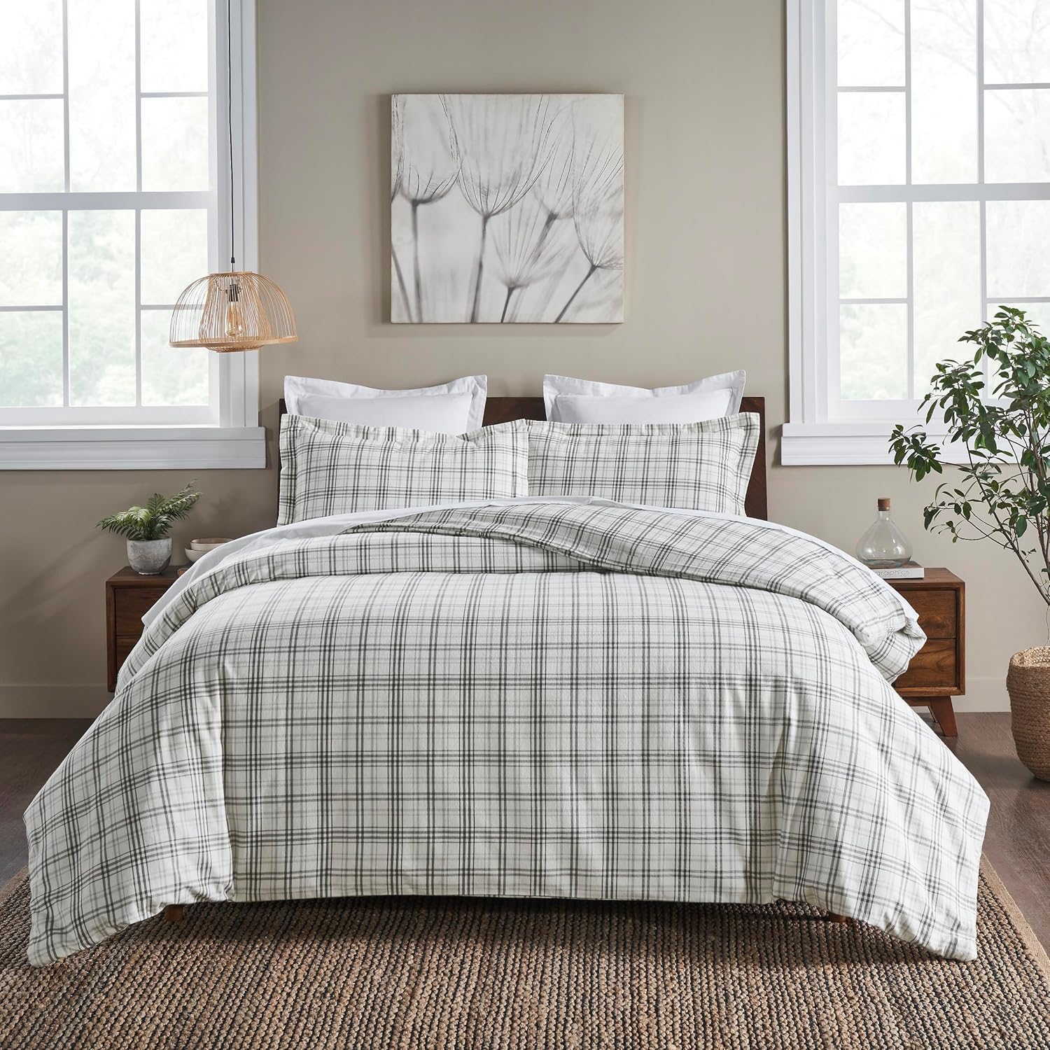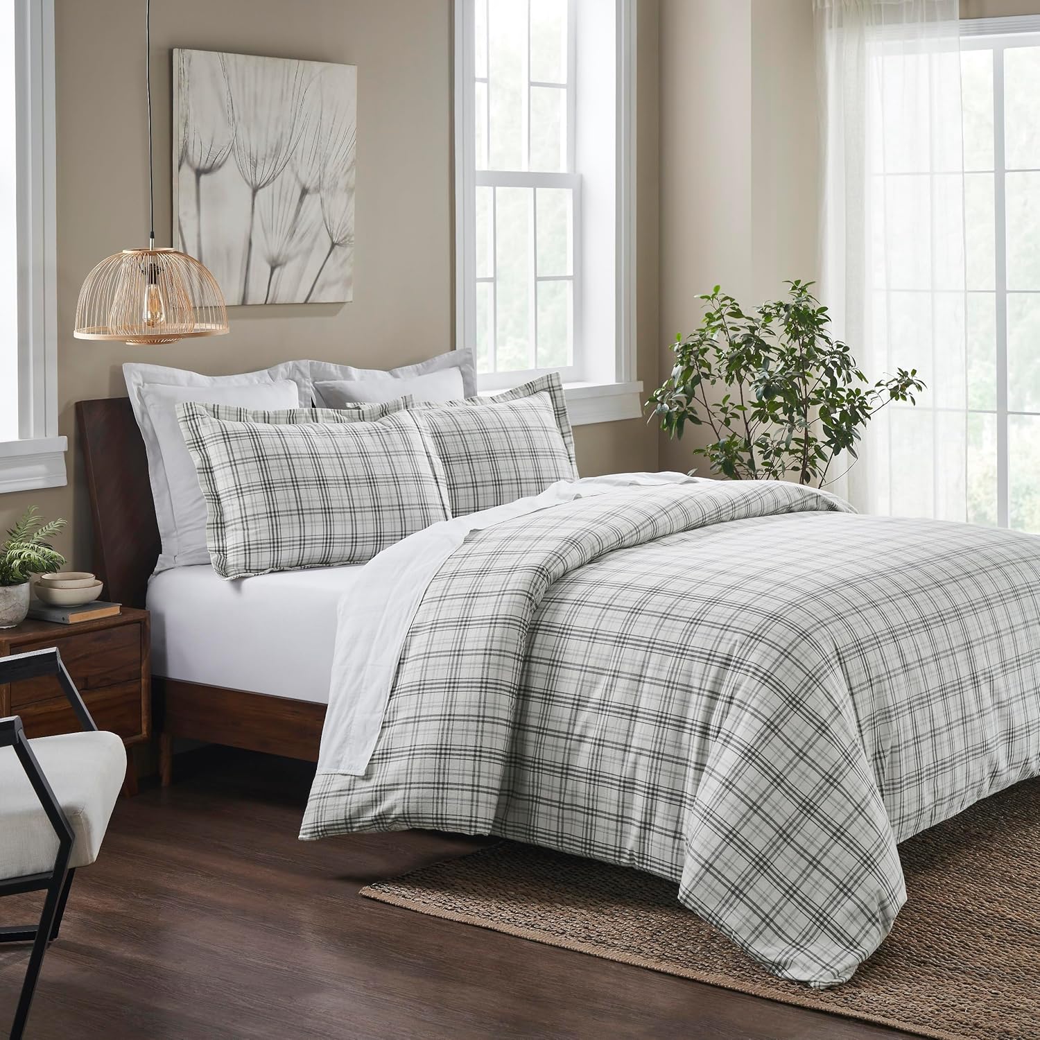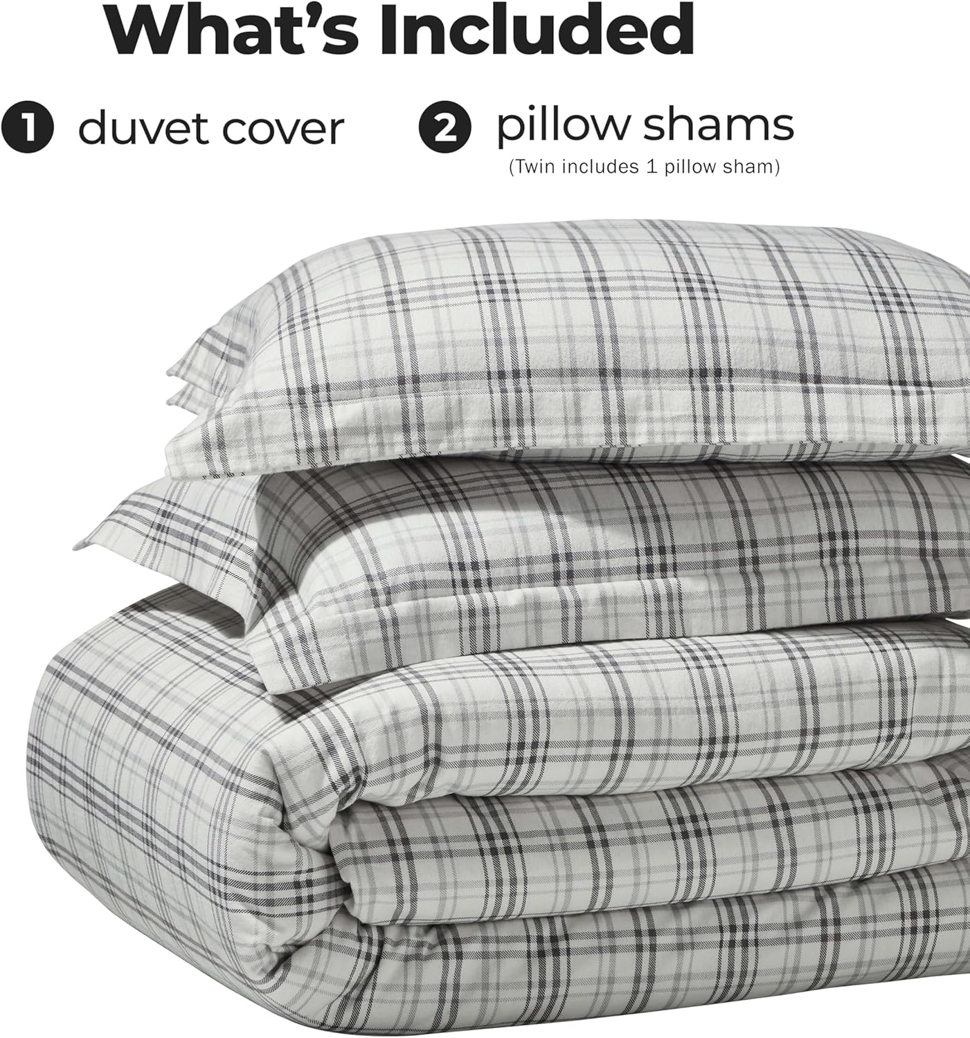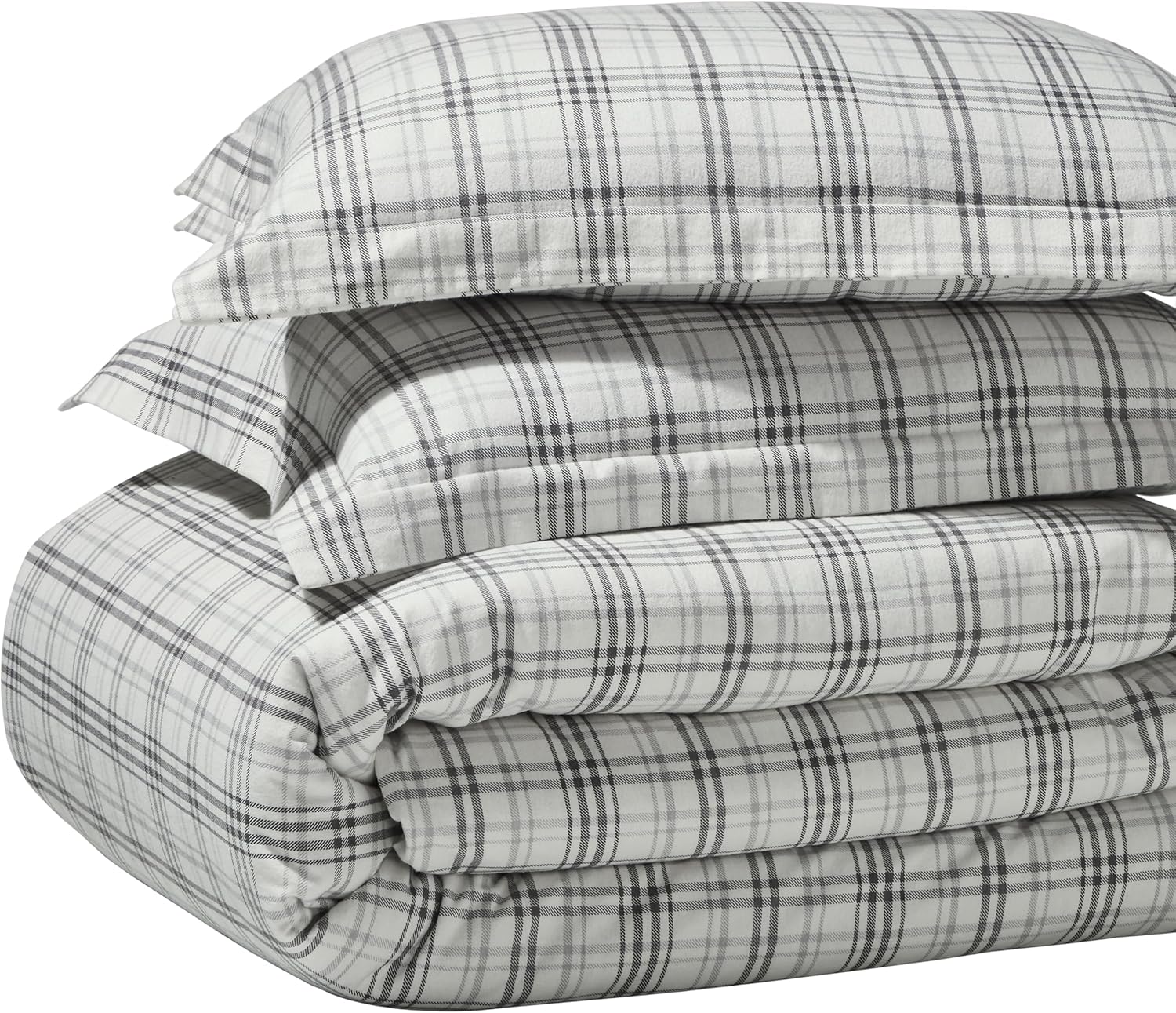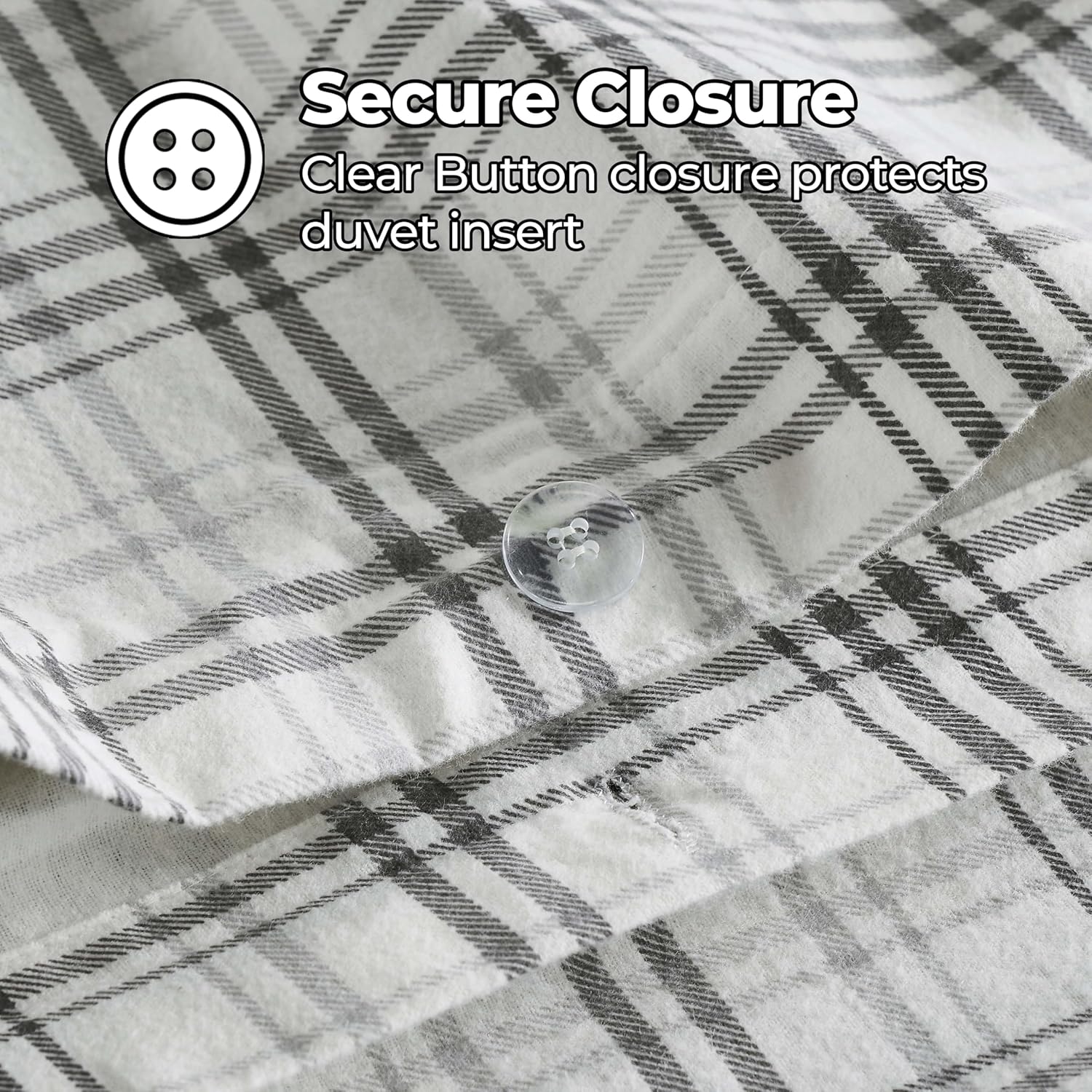 Wrap yourself in soft, cozy comfort with this premium plaid flannel duvet set. Made from high-quality 100% flannel cotton, it delivers a luxurious, plush feel that's gentle on your skin and perfect for a restful night's sleep. The deep charcoal plaid design adds a timeless, sophisticated look to any bedroom, blending seamlessly with modern farmhouse, rustic, and traditional decor styles.
