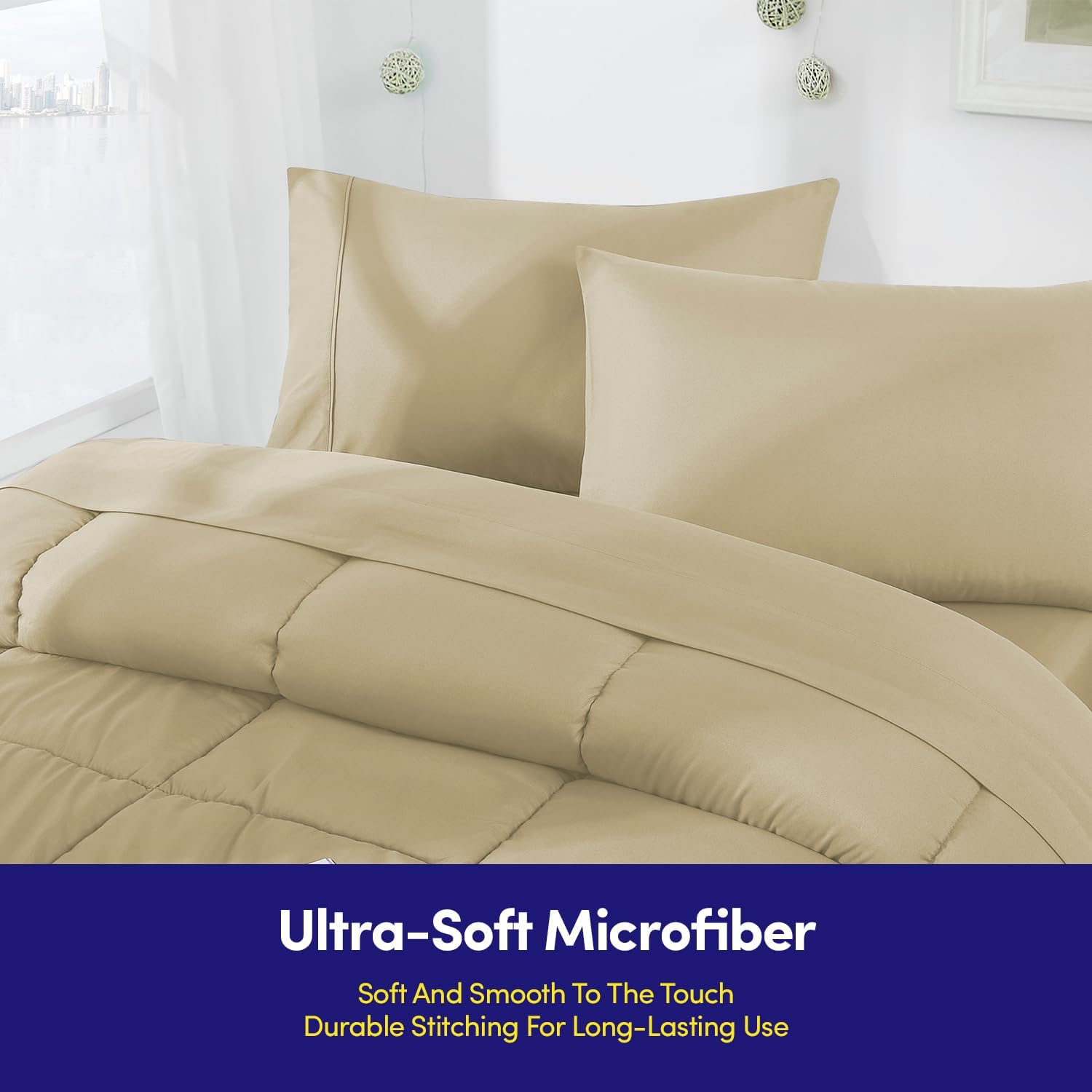 The Sweet Home Collection dorm comforter set is a must-have for any student looking for comfort and style in their dorm room. With its premium fabric, you can enjoy a soft, cozy feel that's gentle on your skin and built to last. This all-inclusive 5-piece set comes with one comforter, one flat sheet, one fitted sheet, and two pillowcases, making it perfect for small spaces and easy to maintain.