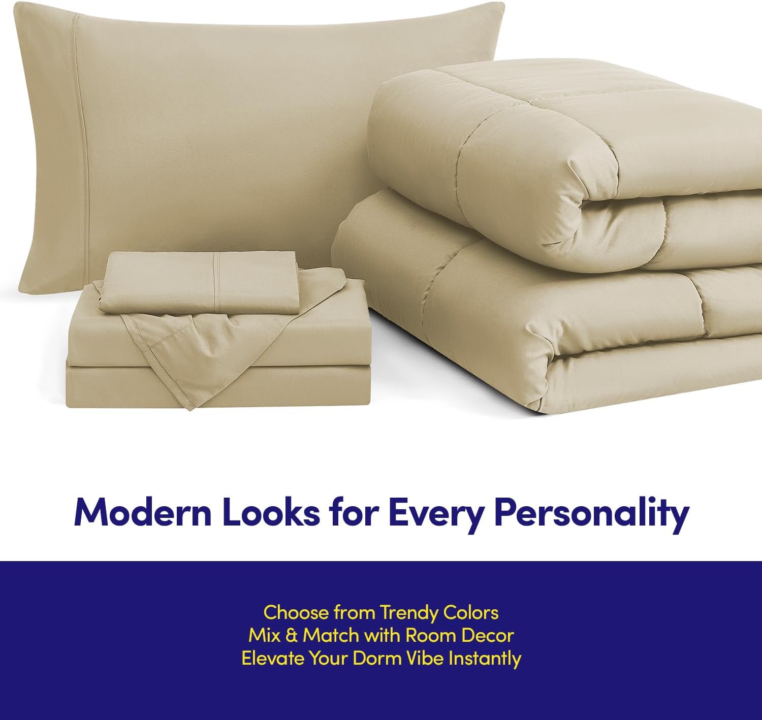 The modern taupe color adds a refined touch to your room, while the minimalist design seamlessly blends comfort and aesthetics. No more worrying about mismatched bedding or laundry pilesâthis set is designed for convenience and is easy to clean, keeping your dorm room looking fresh and inviting every day. It fits perfectly on Twin XL beds, providing a snug, restful sleep after a long day of classes, work, and social life.