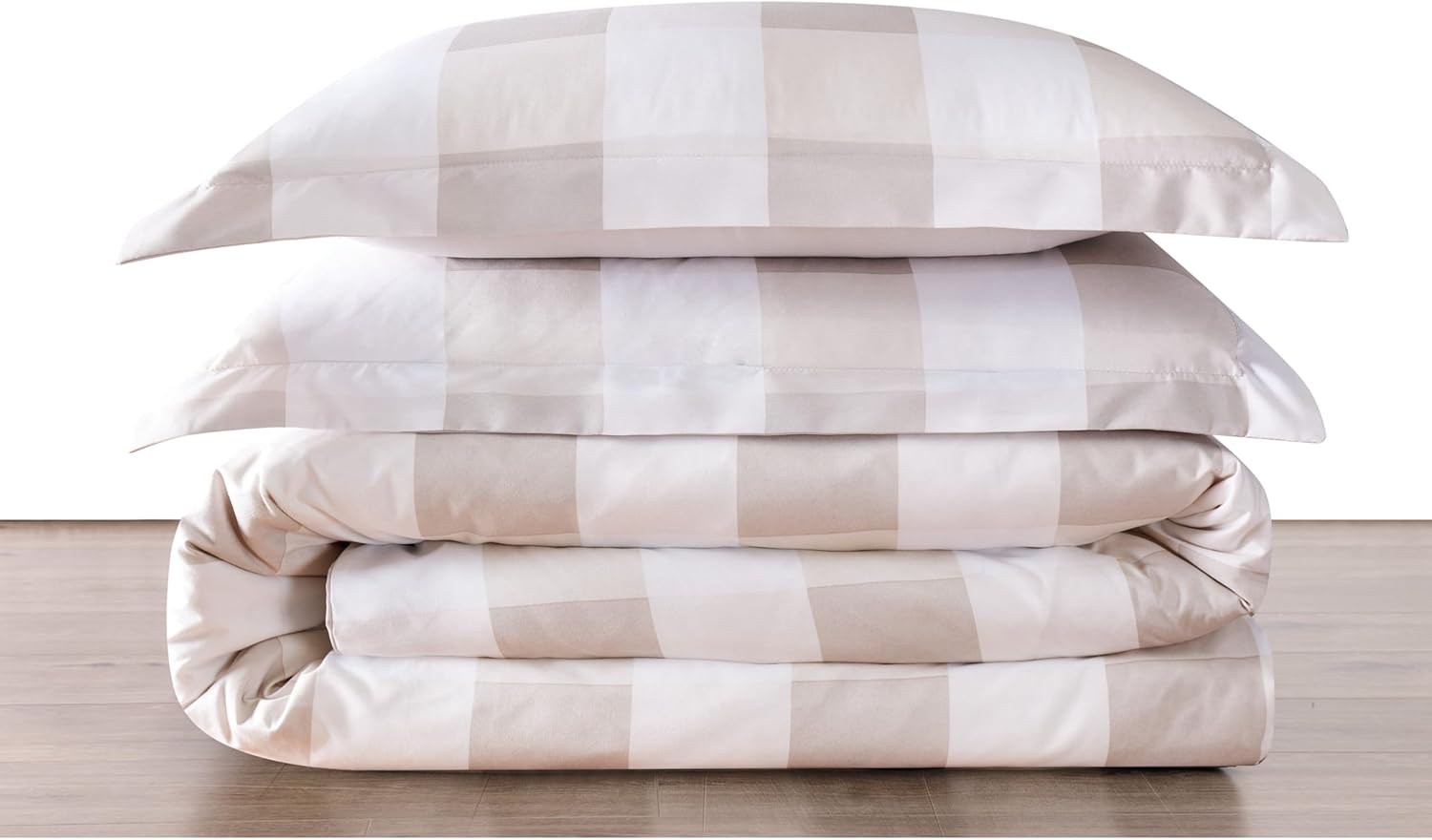 Transform your bedroom into a cozy retreat with this beautifully crafted 2-piece twin XL duvet set. Combining elegance and practicality, it's made from 100% microfiber polyester that delivers unmatched softness and durability. The buffalo plaid pattern in a warm khaki color brings a rustic, timeless charm to your space, making it an ideal choice for both men and women.