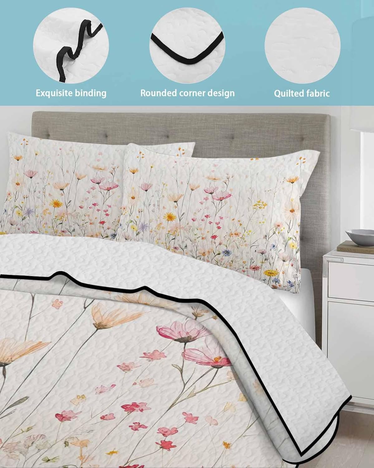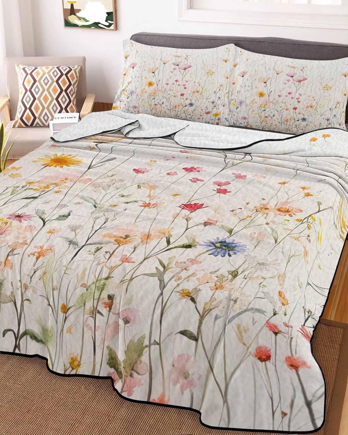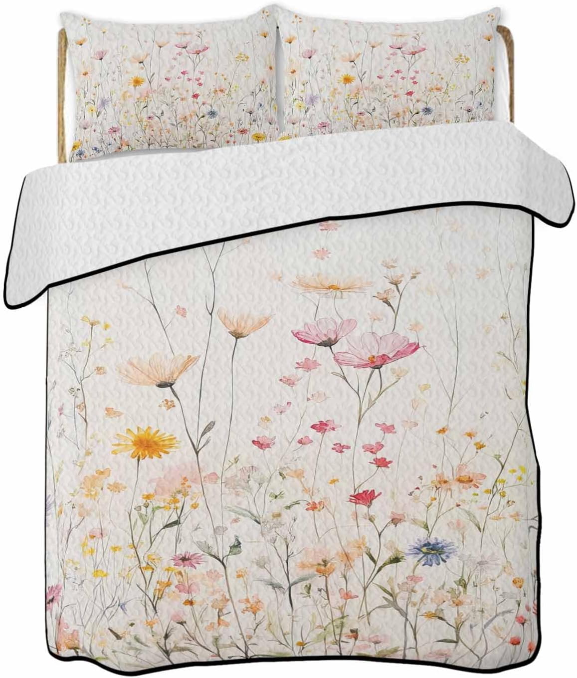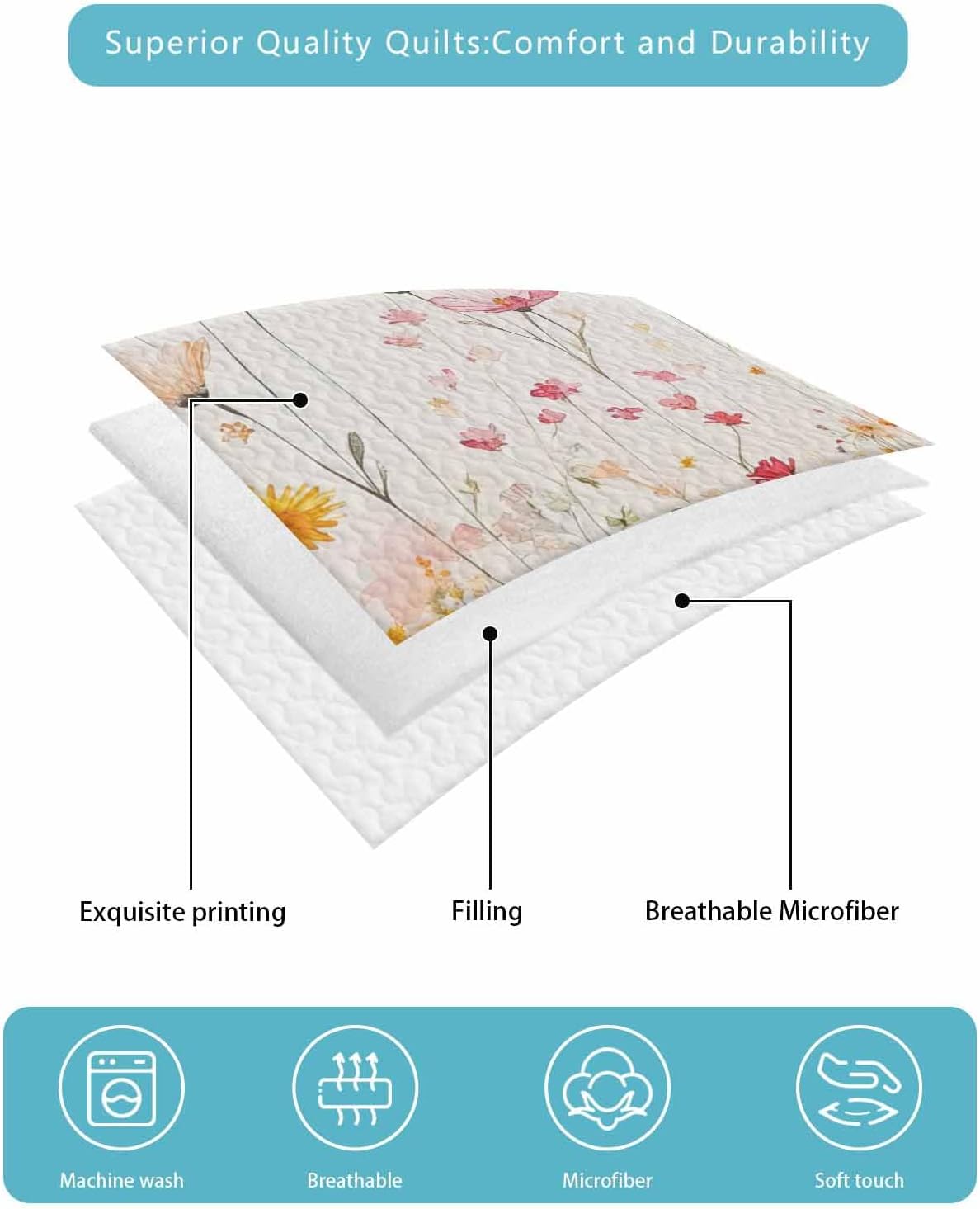 Crafted from a soft polyester and cotton blend, this quilt set offers a perfect balance of comfort and breathability, making it ideal for all-year warmth and style. The delicate watercolor wildflower design brings a touch of elegance and charm to your bedroom, creating a serene and inviting space. Whether you're seeking a cozy bed cover for a warm summer night or a fresh look for your spring decor, this set meets every need with its gentle softness and timeless appeal.