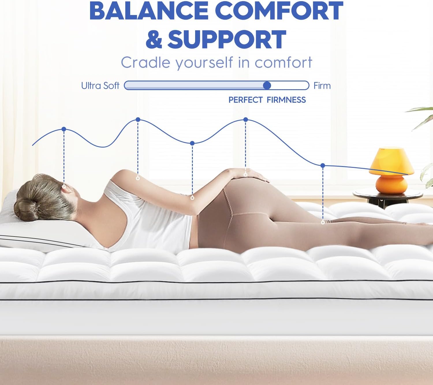 Enhance your sleep experience, relieve back pain, and enjoy the perfect balance of comfort and support with the USKRIGE King Mattress Topper. Your home deserves better.