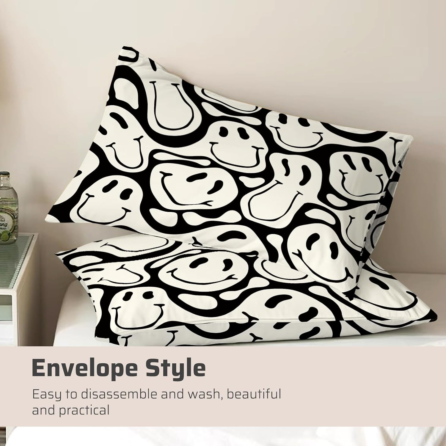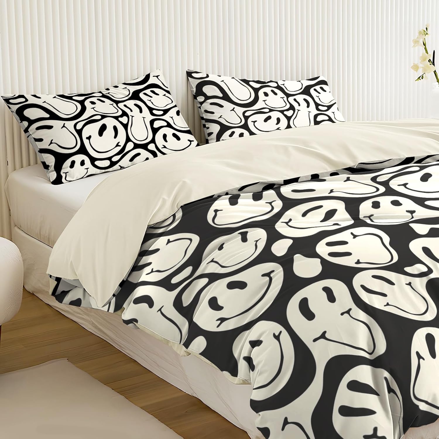 Add a splash of colorful nostalgia to your child's bedroom with this stylish 3-piece duvet cover set. Featuring a charming smiley face pattern, it effortlessly blends fun and whimsy with modern comfort, making it the perfect choice for holiday themes, birthdays, or everyday use.