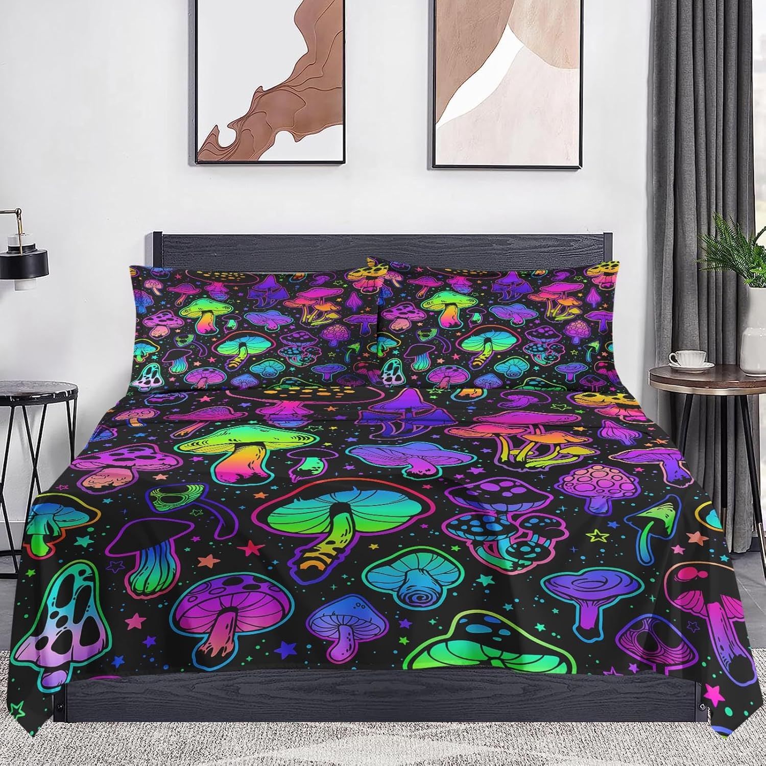 With its modern aesthetics and premium quality, this neon mushroom bedding set is a must-have for those who want to elevate their sleep experience while keeping their decor fresh and unique.