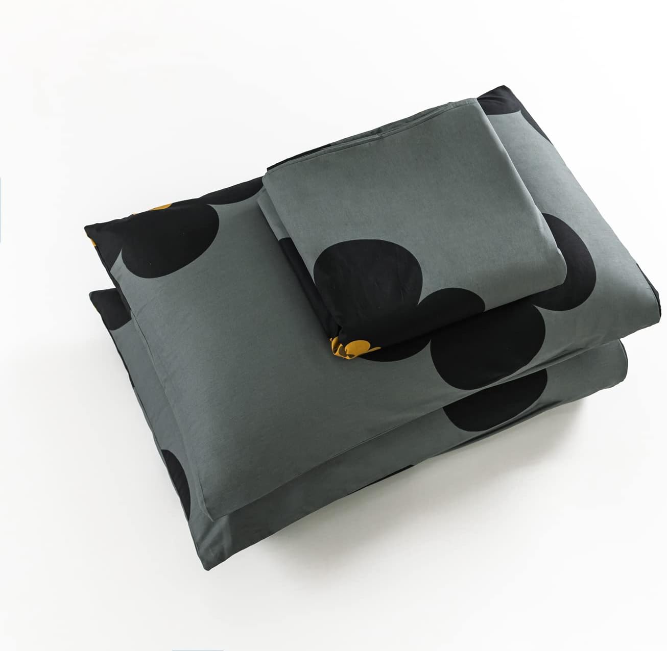 Elevate your bedroom with this beautiful black floral duvet cover set. Crafted from 100% high-density natural cotton, it delivers a soft, comfortable, and breathable experience for a restful night's sleep. The striking black and yellow flower pattern combines a playful cartoon style with a sophisticated botanical touch, adding a charming aesthetic to any room.