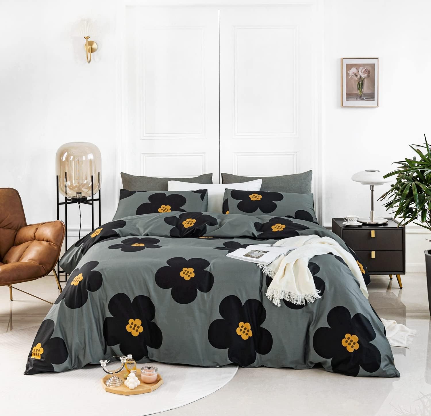 Keywords: black floral duvet cover, yuhenguojie bedding set, cotton duvet cover set, patterned duvet cover, machine washable bedding