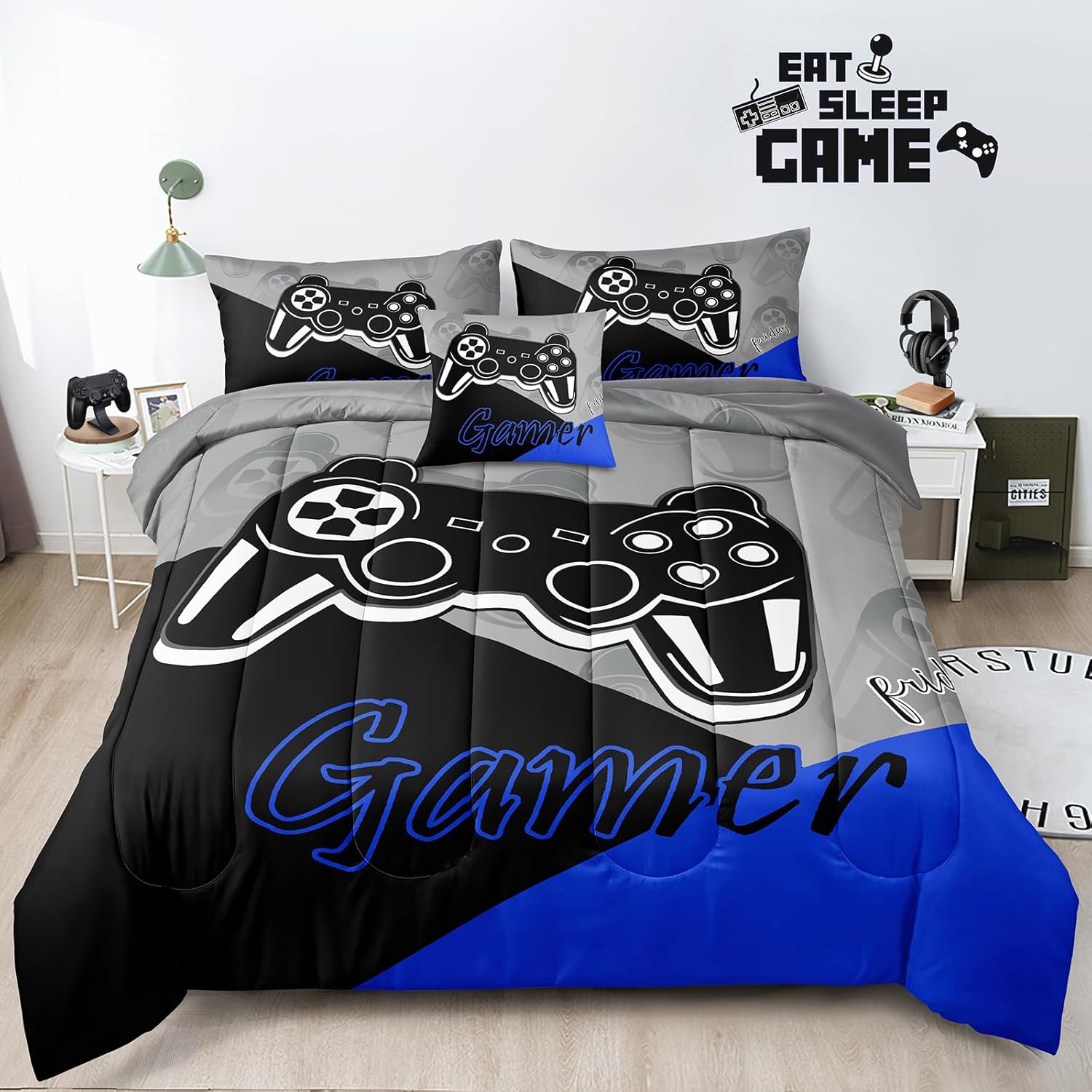 Z.Jian HOME's 5-Piece Gaming Bedding Set offers style, comfort, and easy care for kids and teens. Featuring a game console pattern, it's perfect for a gaming-themed bedroom with a fluffy comforter and microfiber fabric.