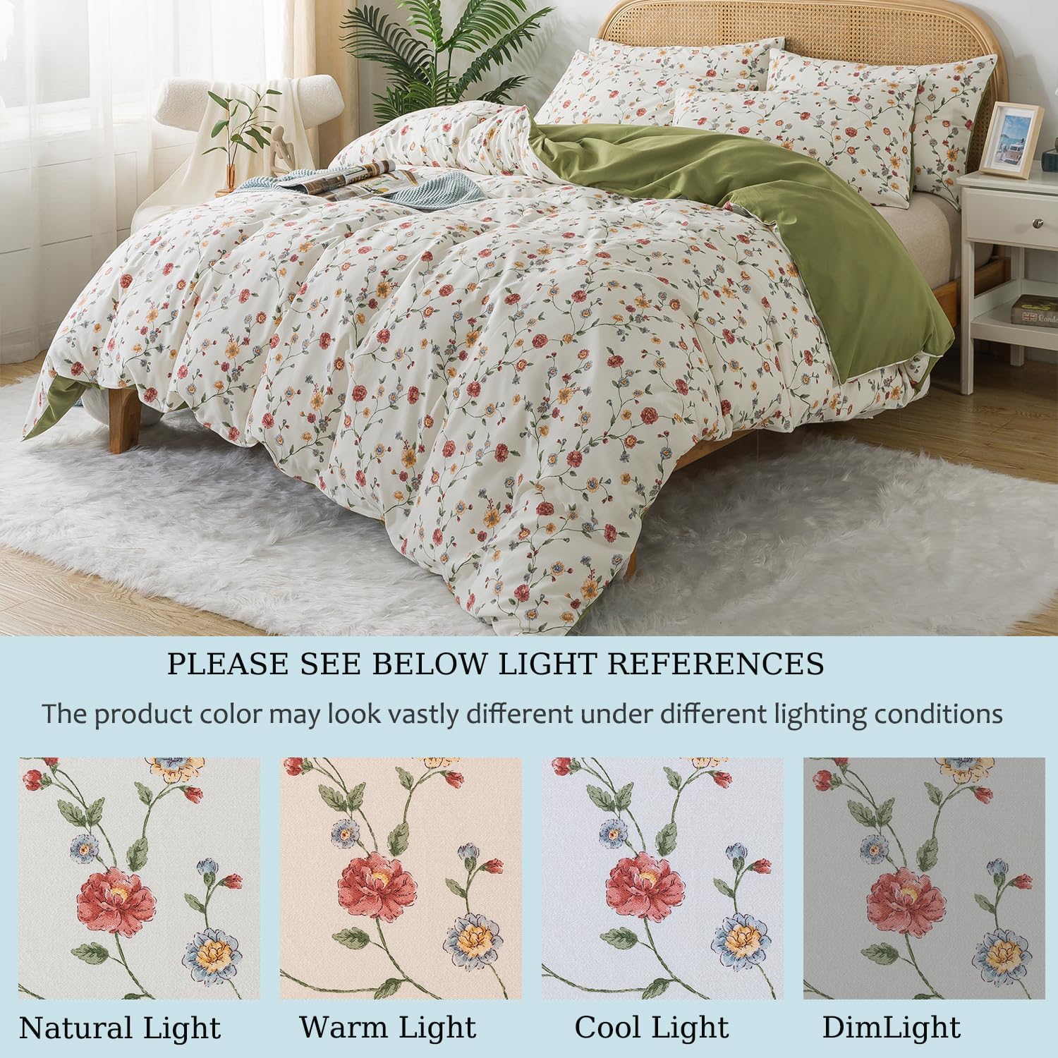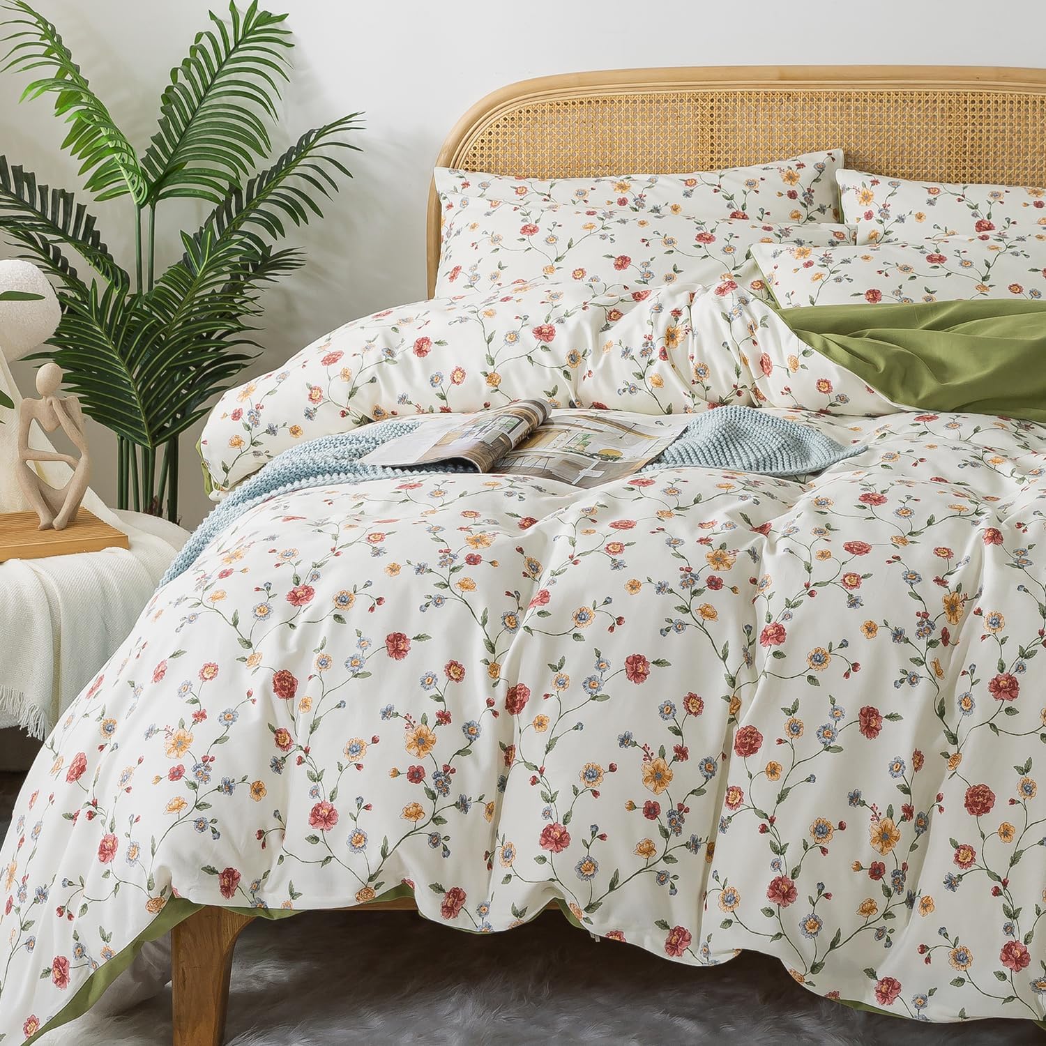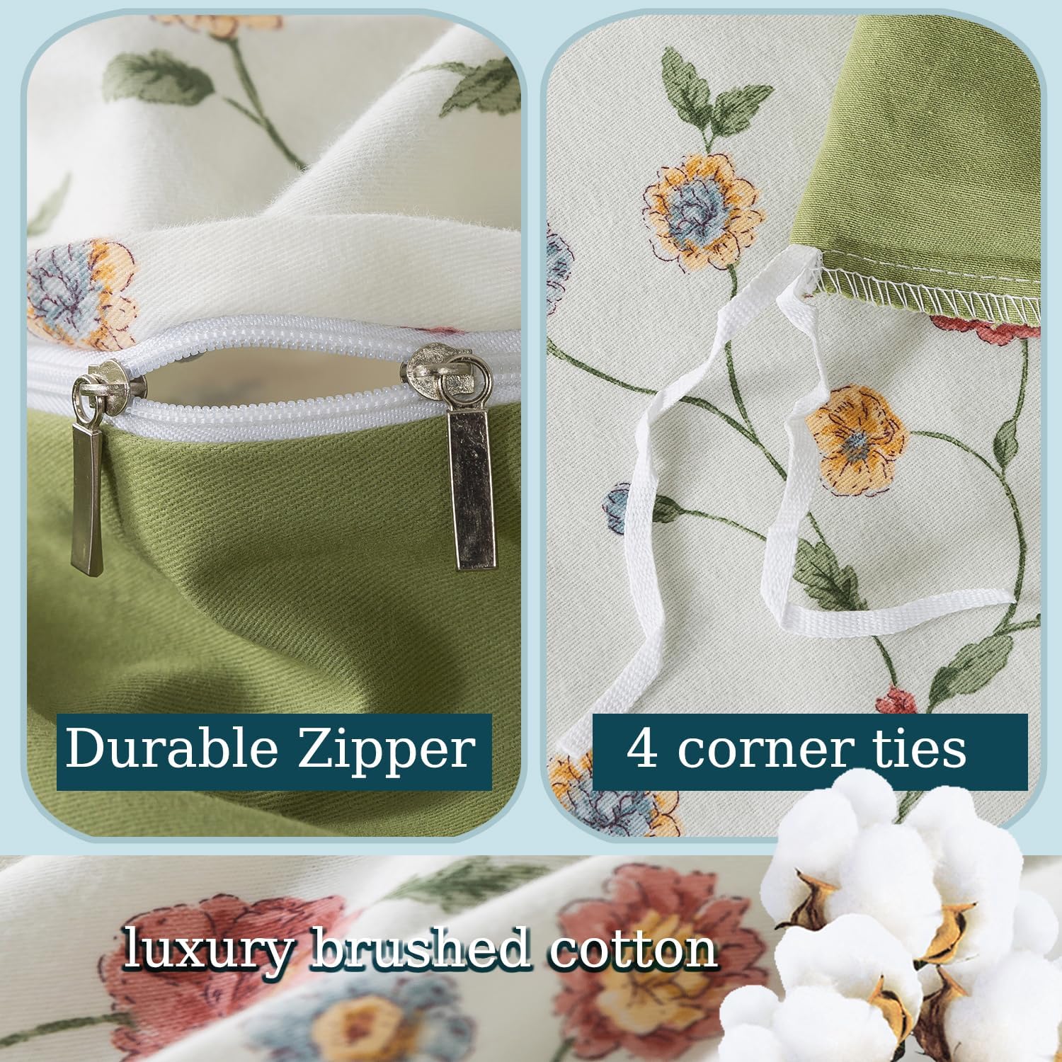 This duvet cover features a reversible floral print, adding a charming, artistic element to your space. It's a perfect match for farmhouse, vintage, or shabby chic decor, offering a versatile and sophisticated aesthetic. The hidden zipper closure ensures your duvet stays securely in place, while the 4 corner ties provide a snug fit and prevent shifting for a clean, organized look.